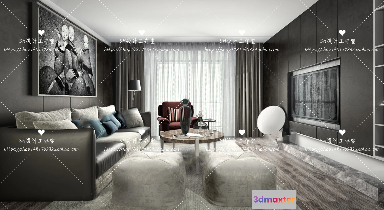 3D Models / 3D Scenes / Interior / Living Room / LIVING ROOM 3D SCENES – VRAY RENDER – 077