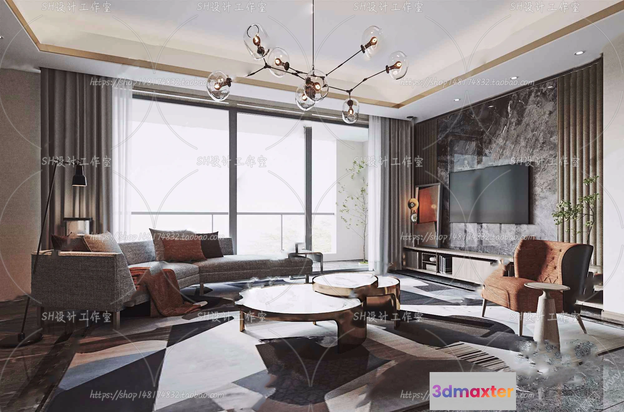 3D Models / 3D Scenes / Interior / Living Room / LIVING ROOM 3D SCENES – VRAY RENDER – 208