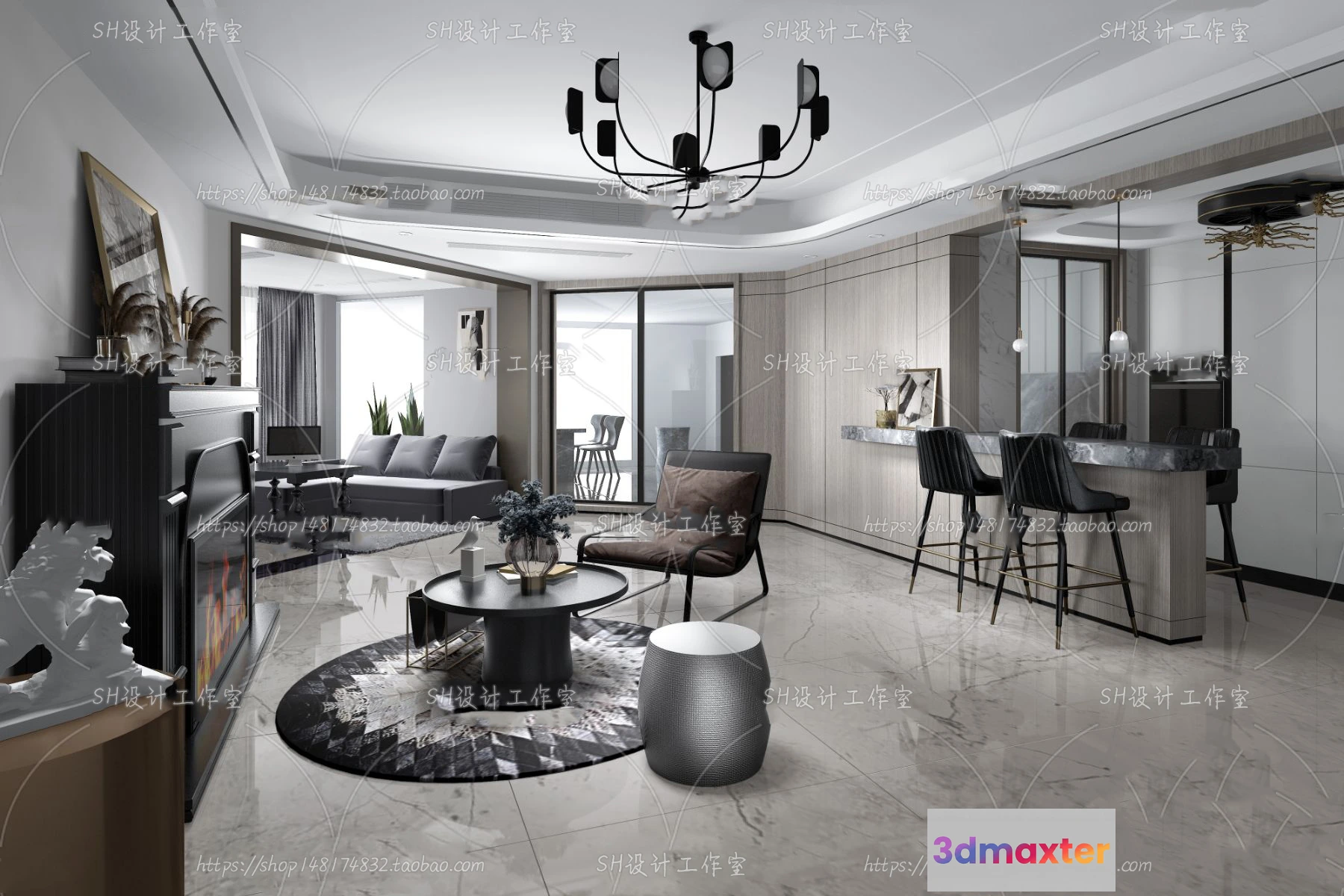 3D Models / 3D Scenes / Interior / Living Room / LIVING ROOM 3D SCENES – VRAY RENDER – 257