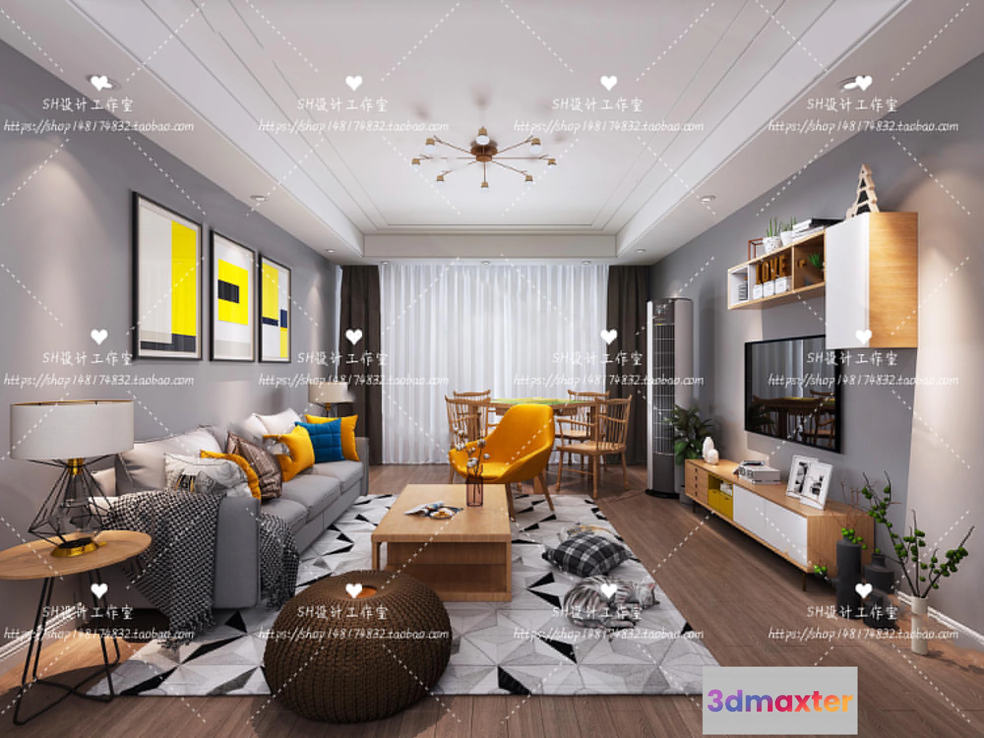 3D Models / 3D Scenes / Interior / Living Room / LIVING ROOM 3D SCENES – VRAY RENDER – 374
