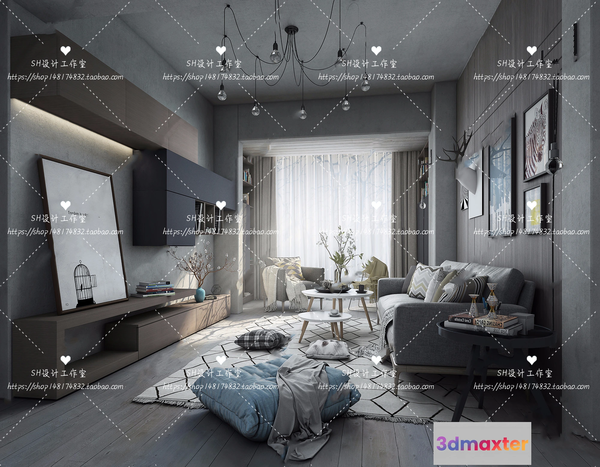 3D Models / 3D Scenes / Interior / Living Room / LIVING ROOM 3D SCENES – VRAY RENDER – 390
