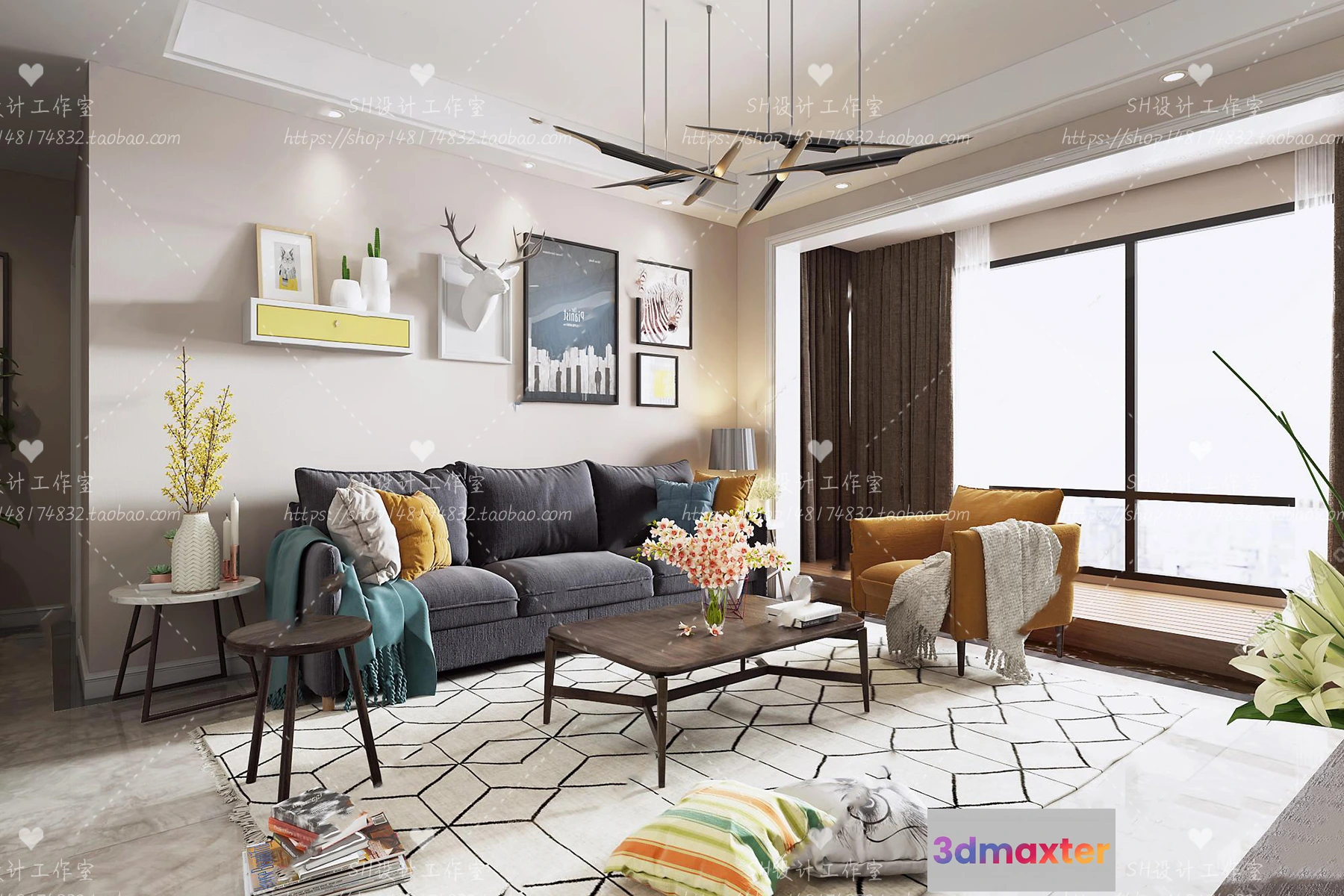 3D Models / 3D Scenes / Interior / Living Room / LIVING ROOM 3D SCENES – VRAY RENDER – 494