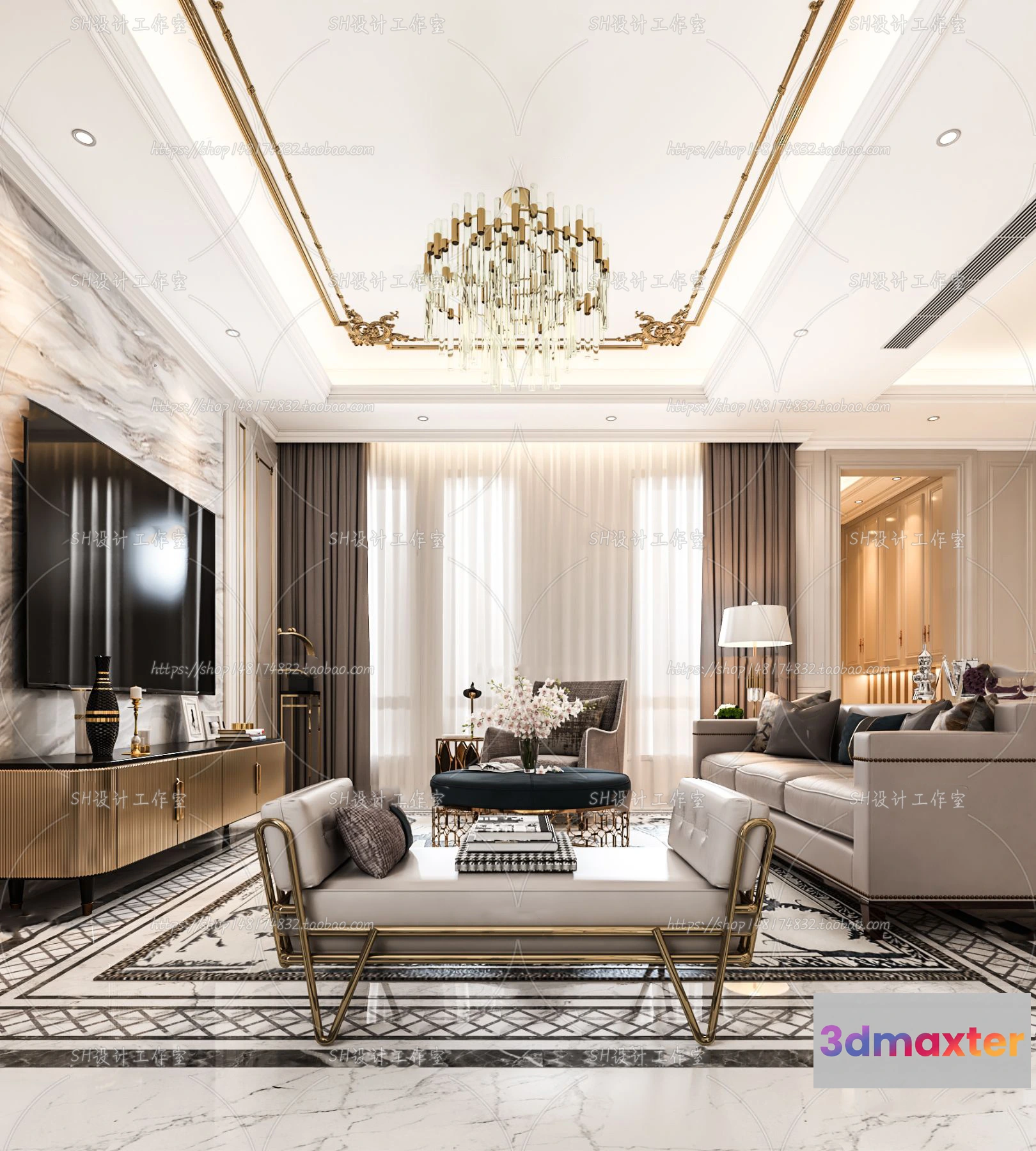 3D Models / 3D Scenes / Interior / Living Room / LIVING ROOM 3D SCENES – VRAY RENDER – 712