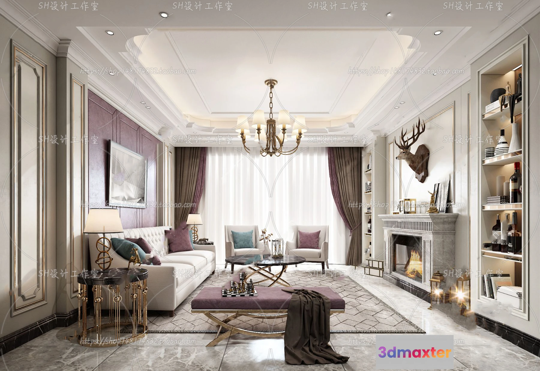 3D Models / 3D Scenes / Interior / Living Room / LIVING ROOM 3D SCENES – VRAY RENDER – 713