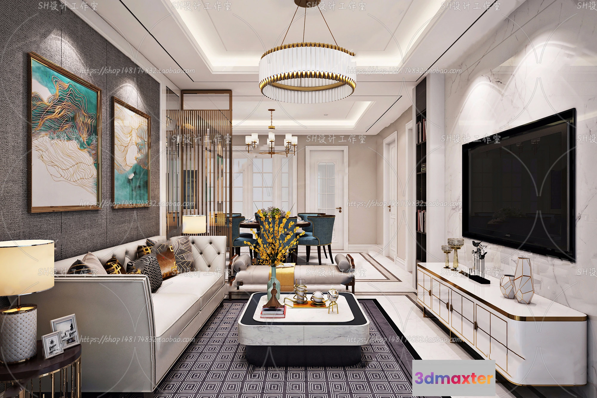 3D Models / 3D Scenes / Interior / Living Room / LIVING ROOM 3D SCENES – VRAY RENDER – 718