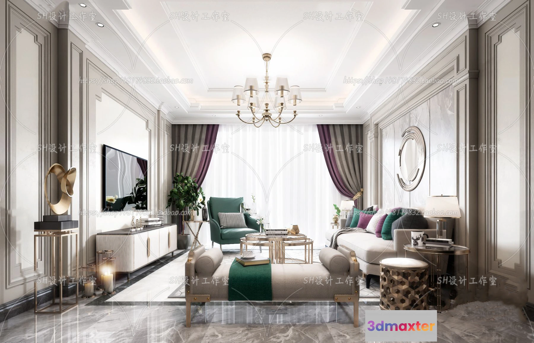 3D Models / 3D Scenes / Interior / Living Room / LIVING ROOM 3D SCENES – VRAY RENDER – 741