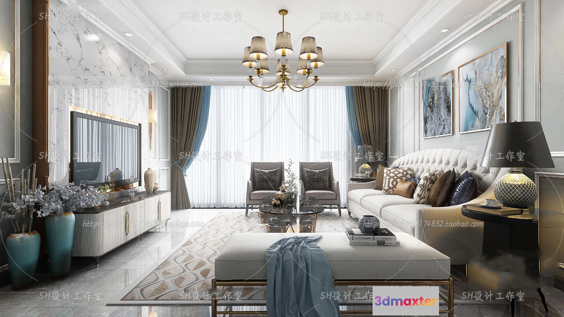 3D Models / 3D Scenes / Interior / Living Room / LIVING ROOM 3D SCENES – VRAY RENDER – 744