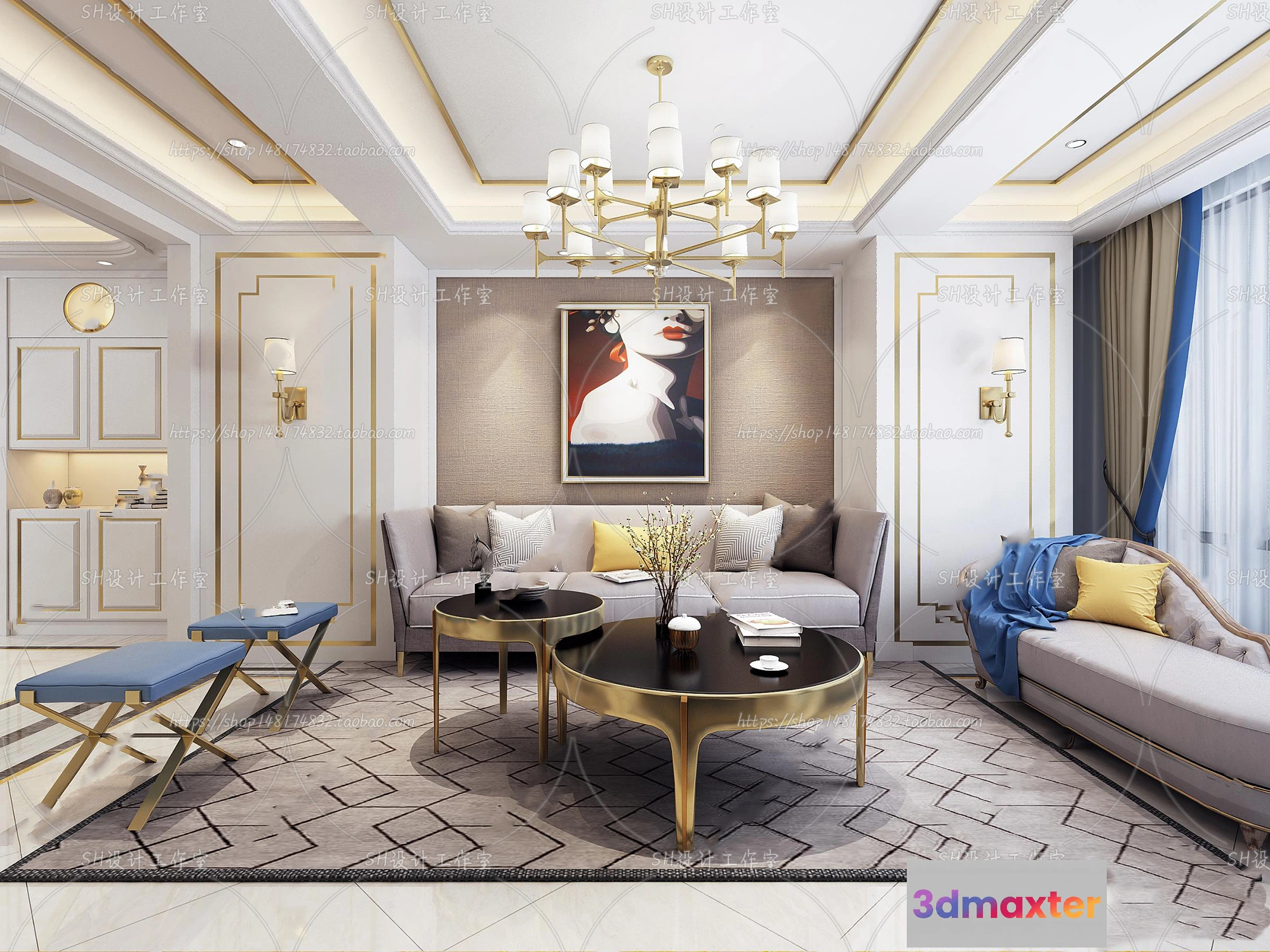 3D Models / 3D Scenes / Interior / Living Room / LIVING ROOM 3D SCENES – VRAY RENDER – 747