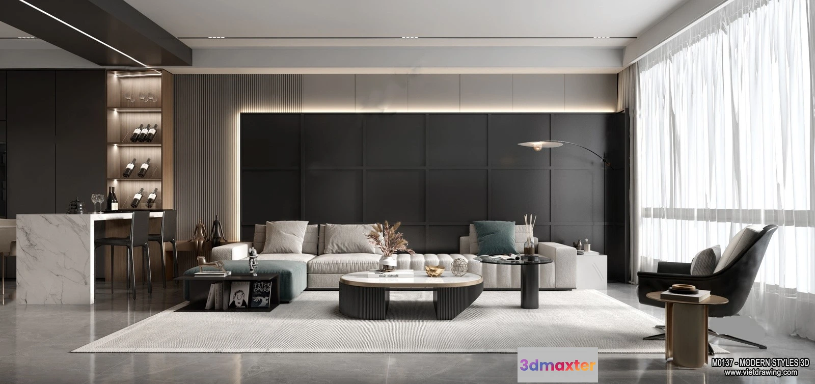 3D Models / 3D Scenes / Interior / Apartment / Living Room and Dining Room – 3D Interior Scene – 3D Models – 016 3D Max