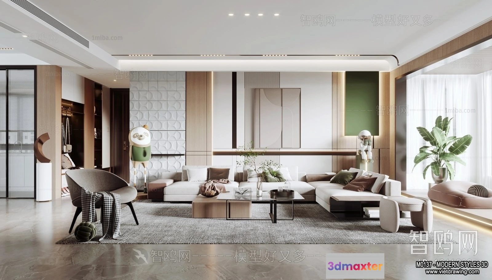 Living Room and Dining Room – 3D Interior Scene – 3D Models – 044 3D Max