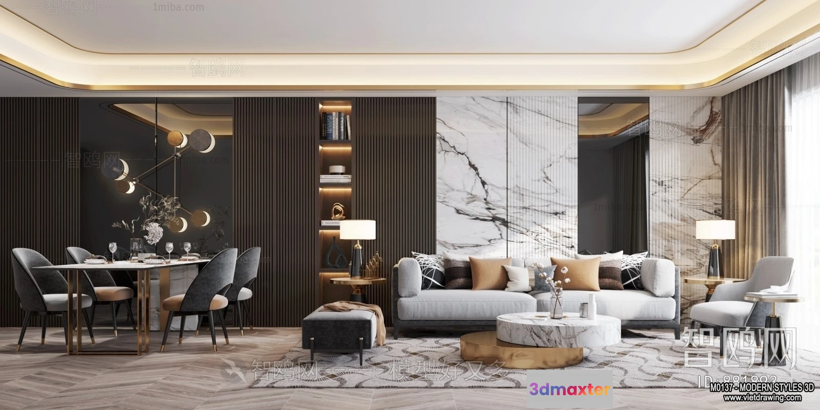 3D Models / 3D Scenes / Interior / Apartment / Living Room and Dining Room – 3D Interior Scene – 3D Models – 101 3D Max