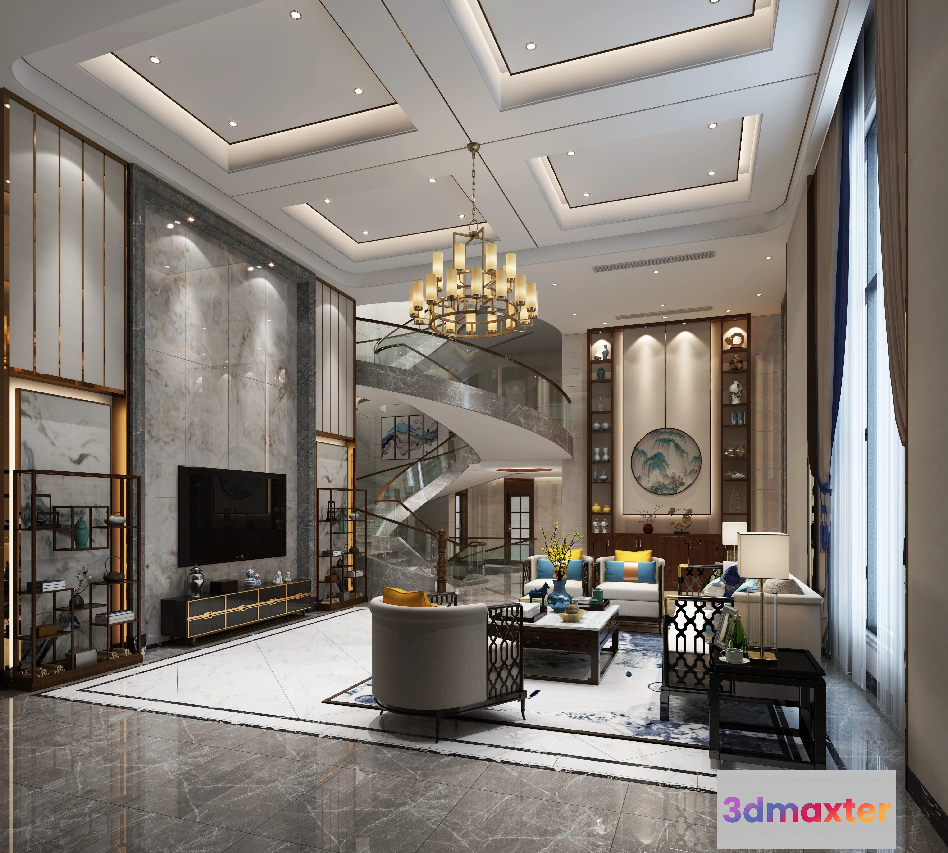 3D Models / 3D Scenes / Interior / Living Room / LIVING ROOM – CHINESE STYLE – 1399