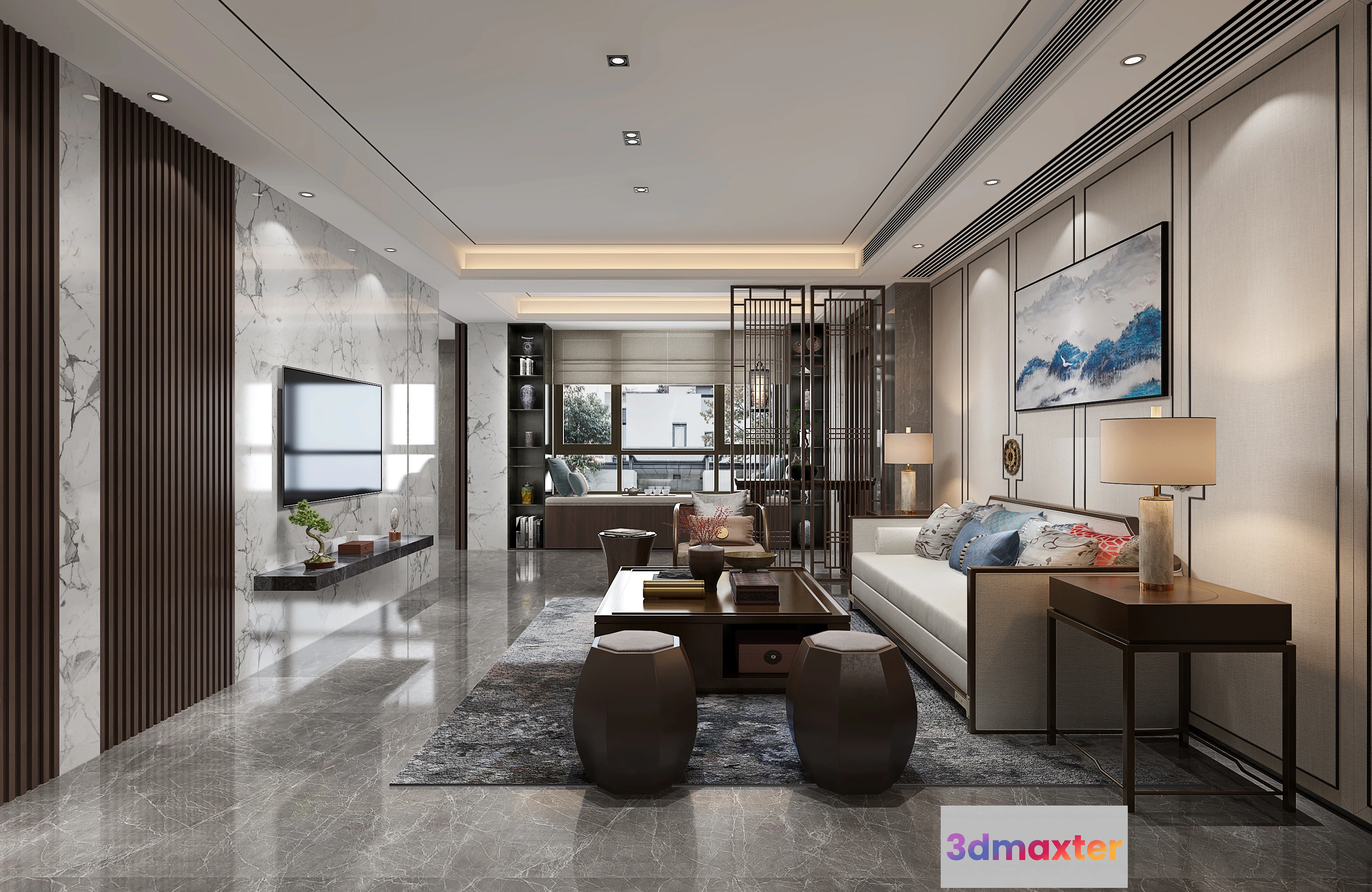 3D Models / 3D Scenes / Interior / Living Room / LIVING ROOM – CHINESE STYLE – 1400
