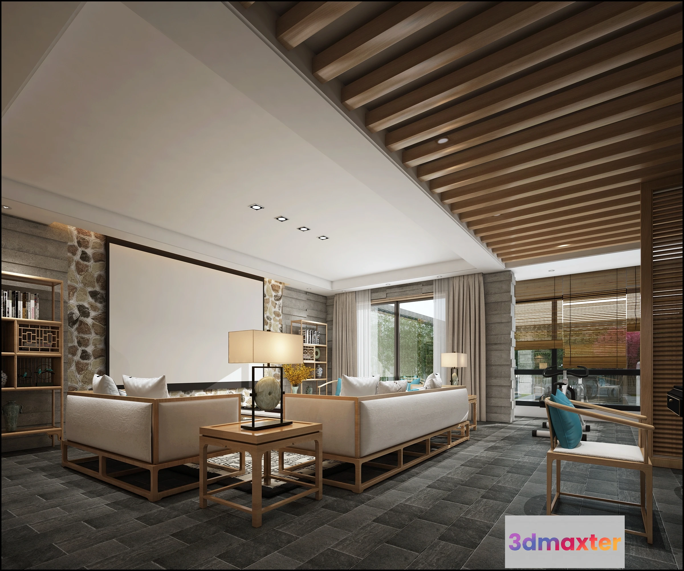 3D Models / 3D Scenes / Interior / Living Room / LIVING ROOM – CHINESE STYLE – 1405