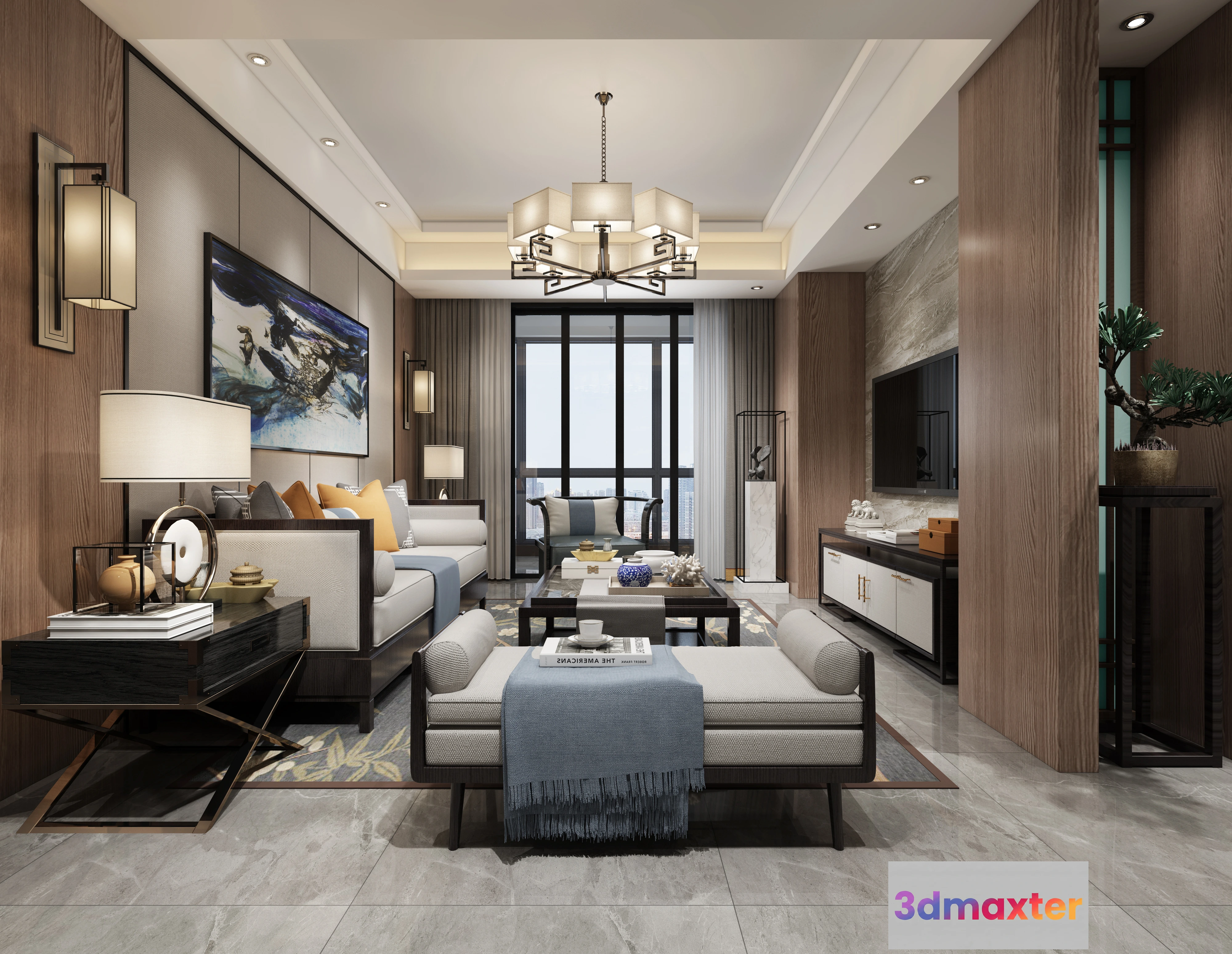 3D Models / 3D Scenes / Interior / Living Room / LIVING ROOM – CHINESE STYLE – 1423