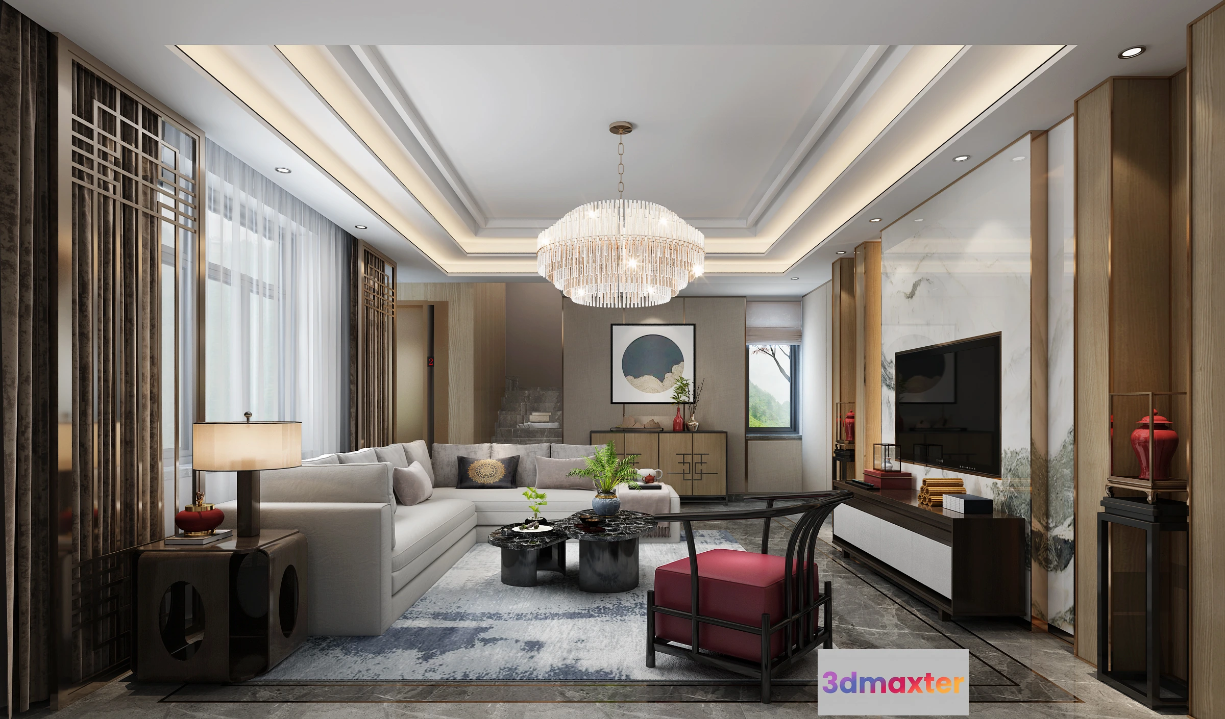 3D Models / 3D Scenes / Interior / Living Room / LIVING ROOM – CHINESE STYLE – 1475