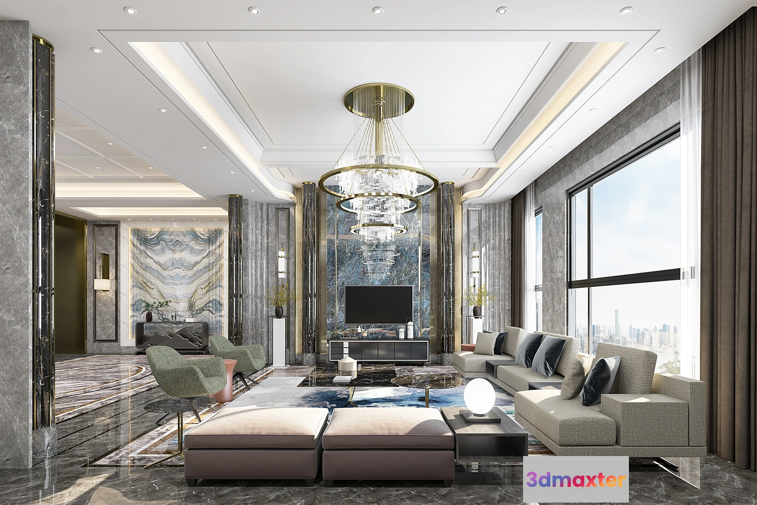 3D Models / 3D Scenes / Interior / Living Room / LIVING ROOM – CHINESE STYLE – 1480