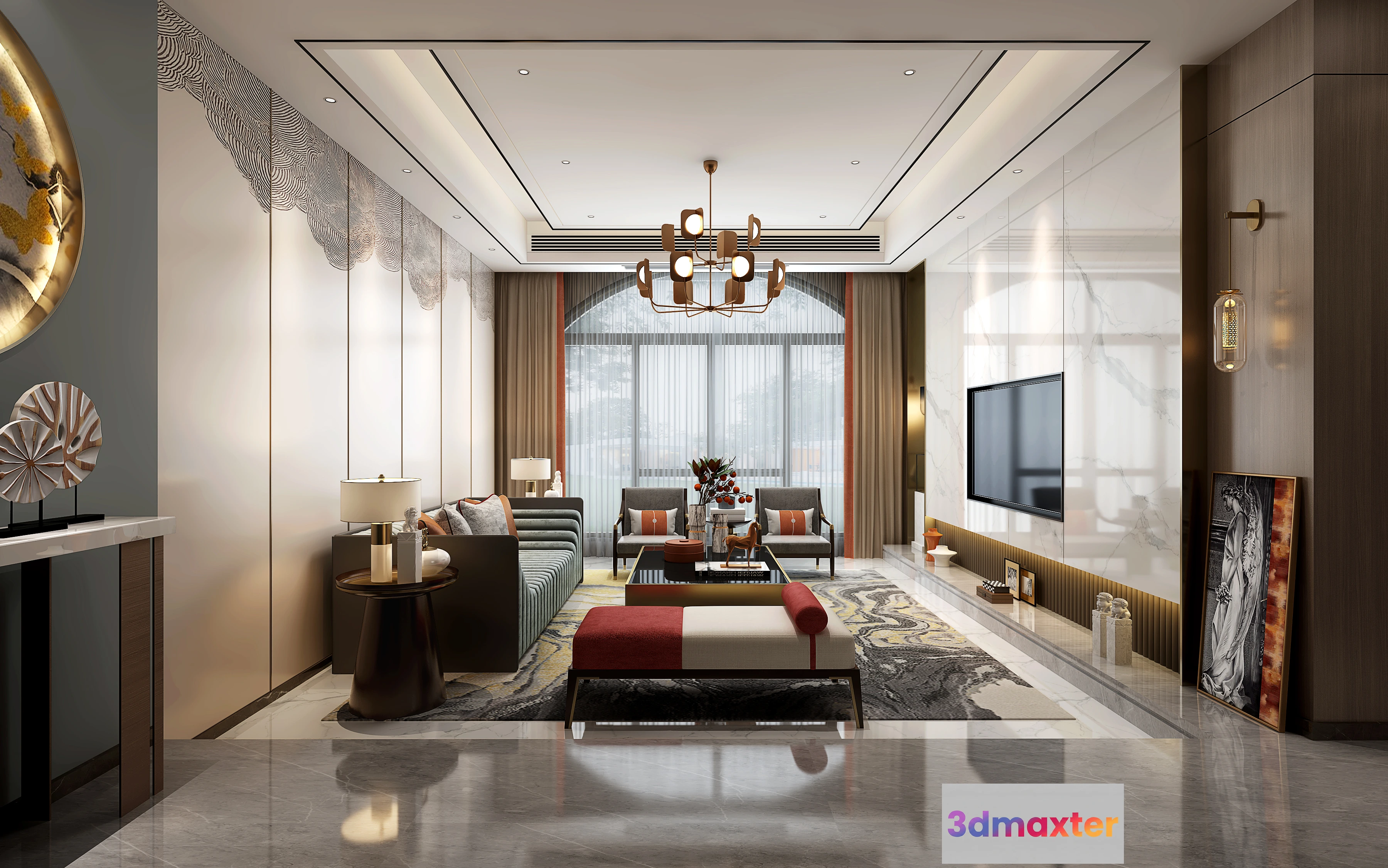 3D Models / 3D Scenes / Interior / Living Room / LIVING ROOM – CHINESE STYLE – 1523