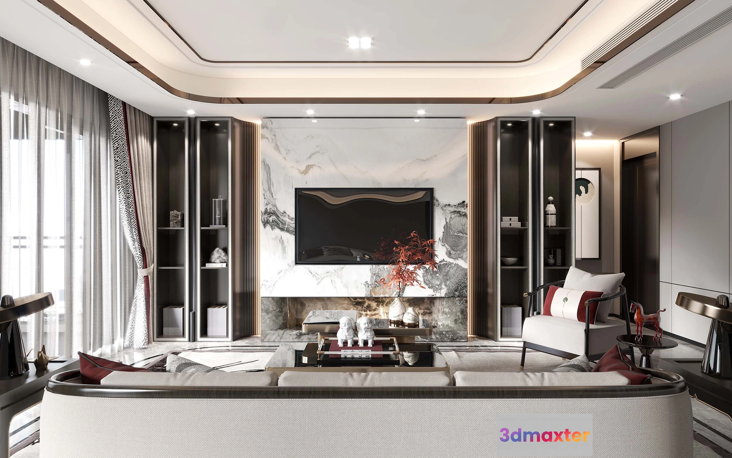 3D Models / 3D Scenes / Interior / Living Room / LIVING ROOM – MODERN STYLE – 3D SCENE – 021