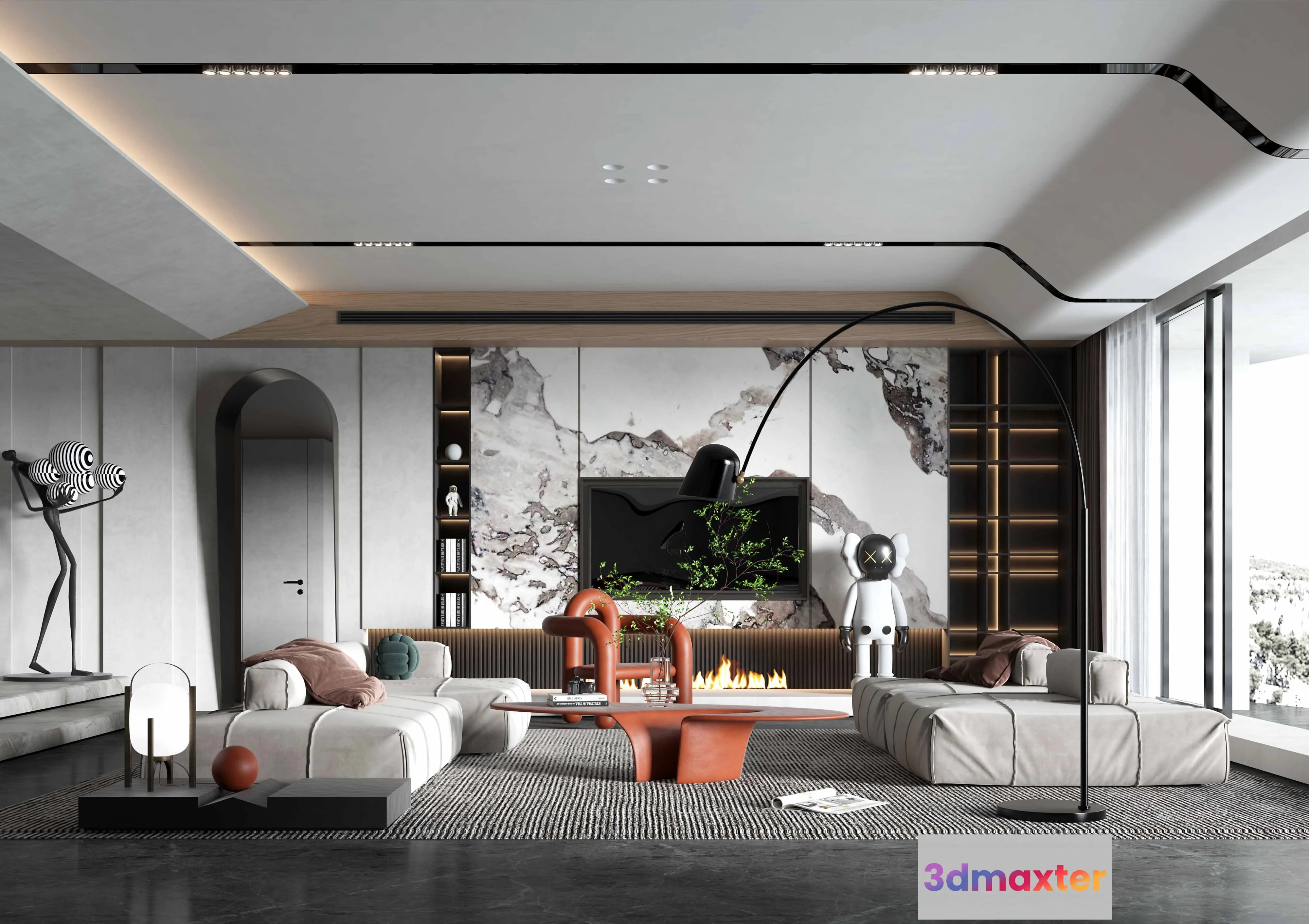 LIVING ROOM – MODERN STYLE – 3D SCENE – 069
