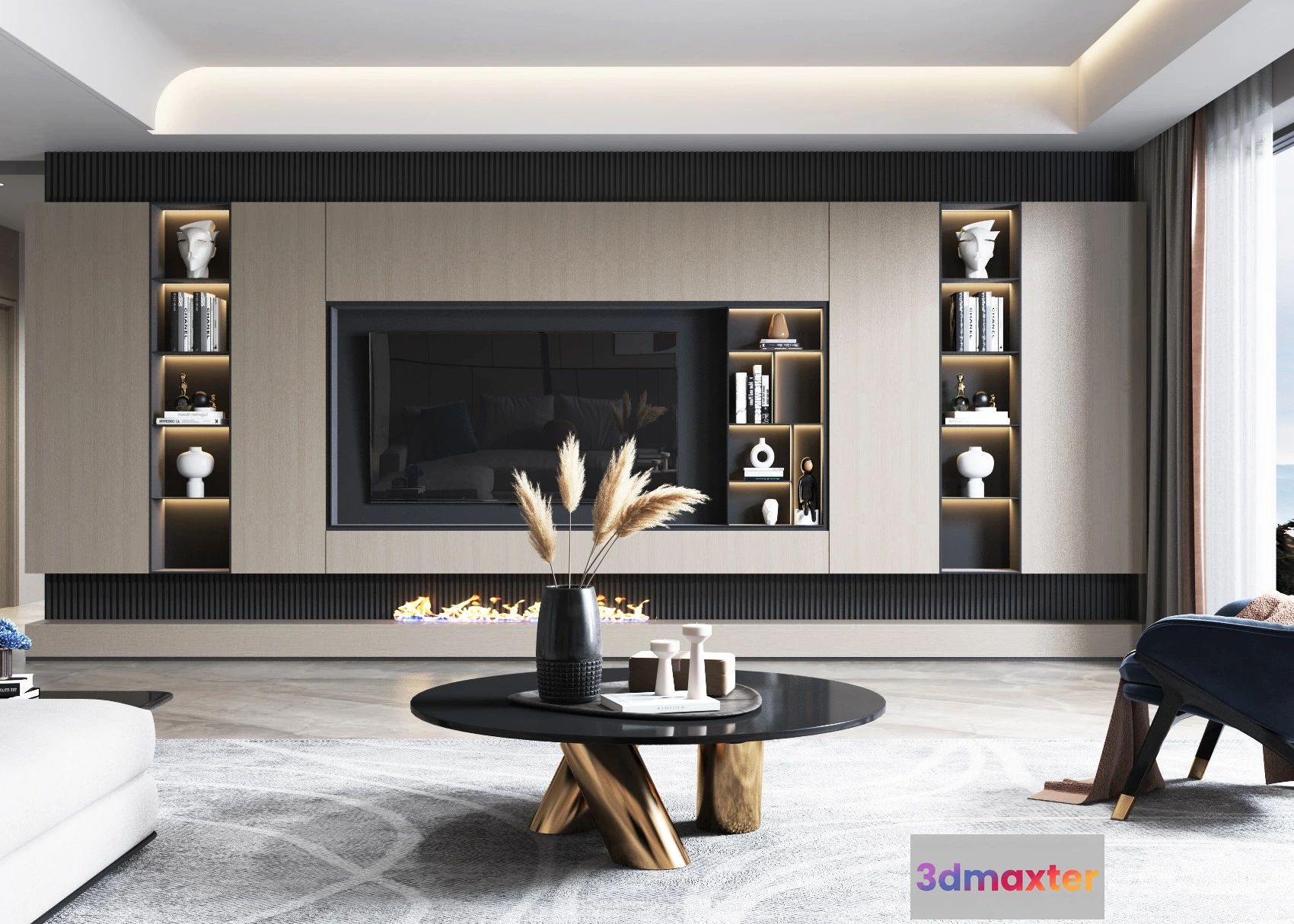 - Name: LIVING ROOM – MODERN STYLE – 3D SCENE – 080