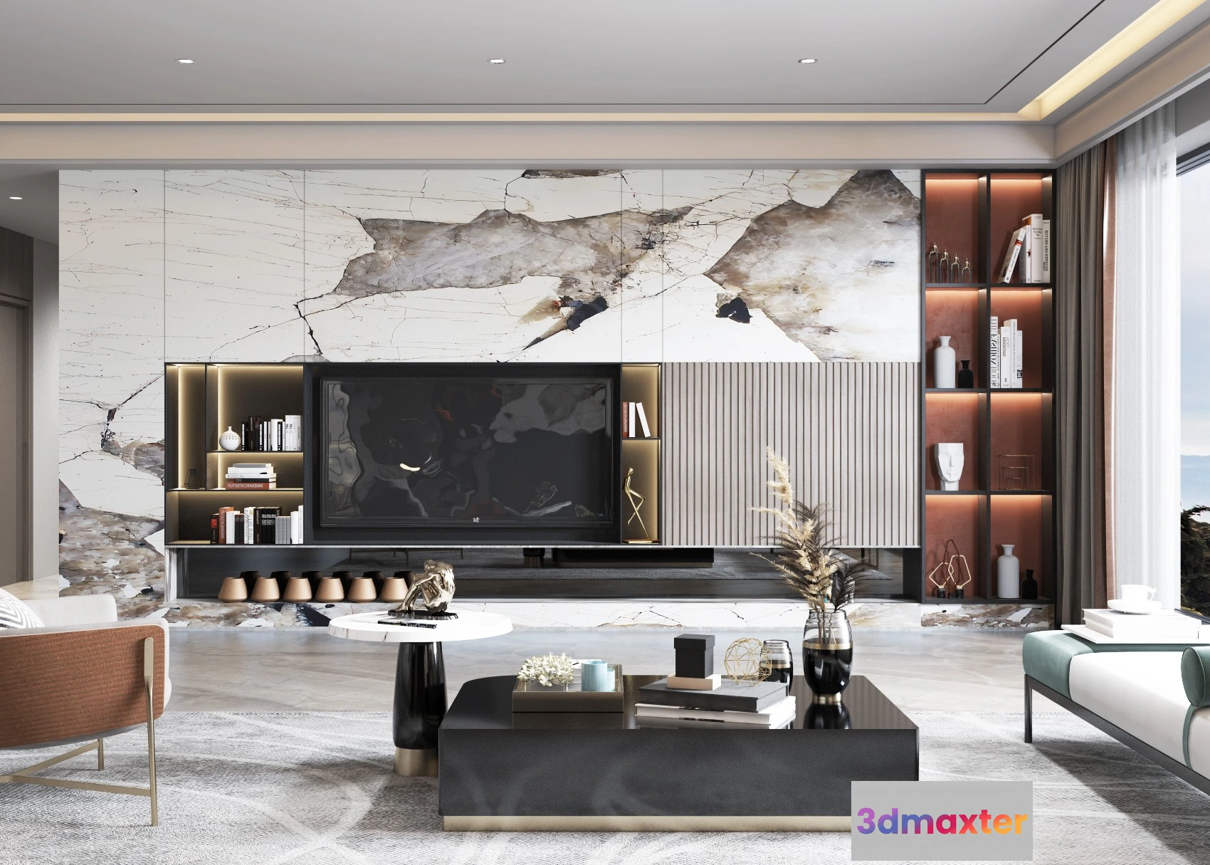 LIVING ROOM – MODERN STYLE – 3D SCENE – 081