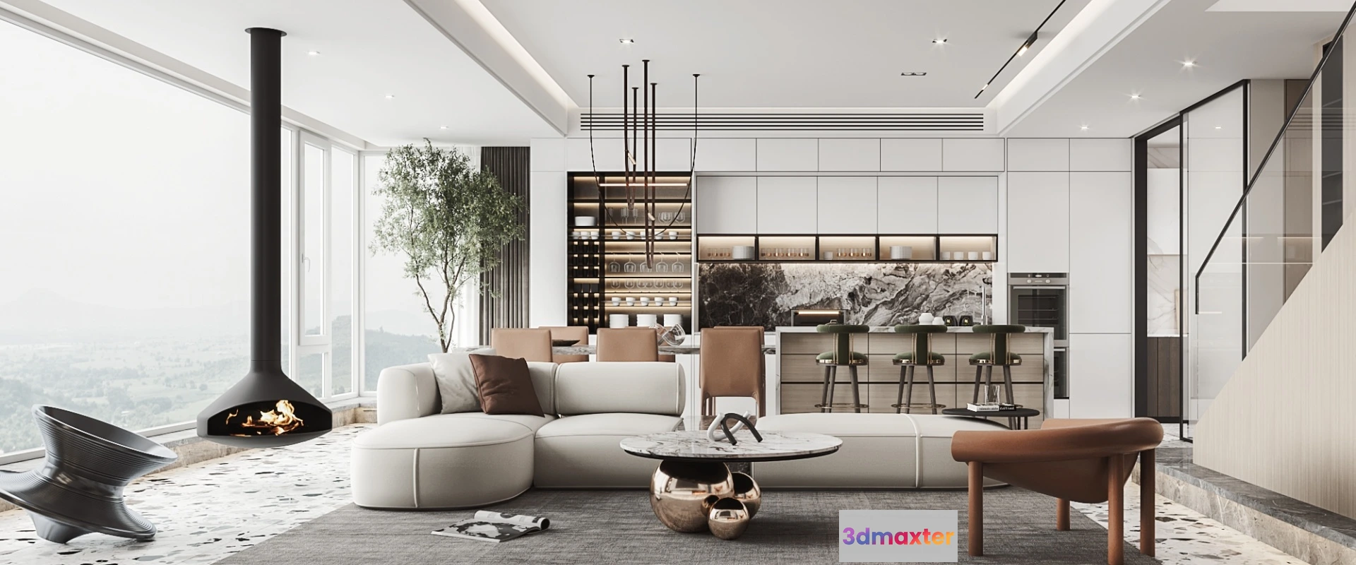- Name: Living Room – Modern Style 3D Scenes – Interior Design – 098
