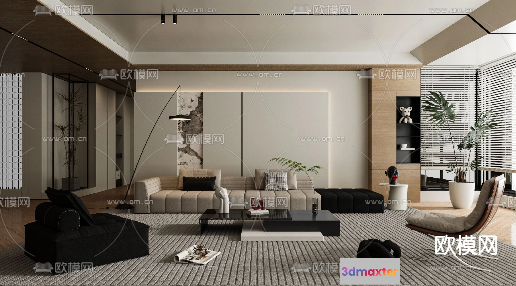 3D Models / 3D Scenes / Interior / Living Room / LIVING ROOM – MODERN STYLE – CORONA – 3D MODEL – 1825