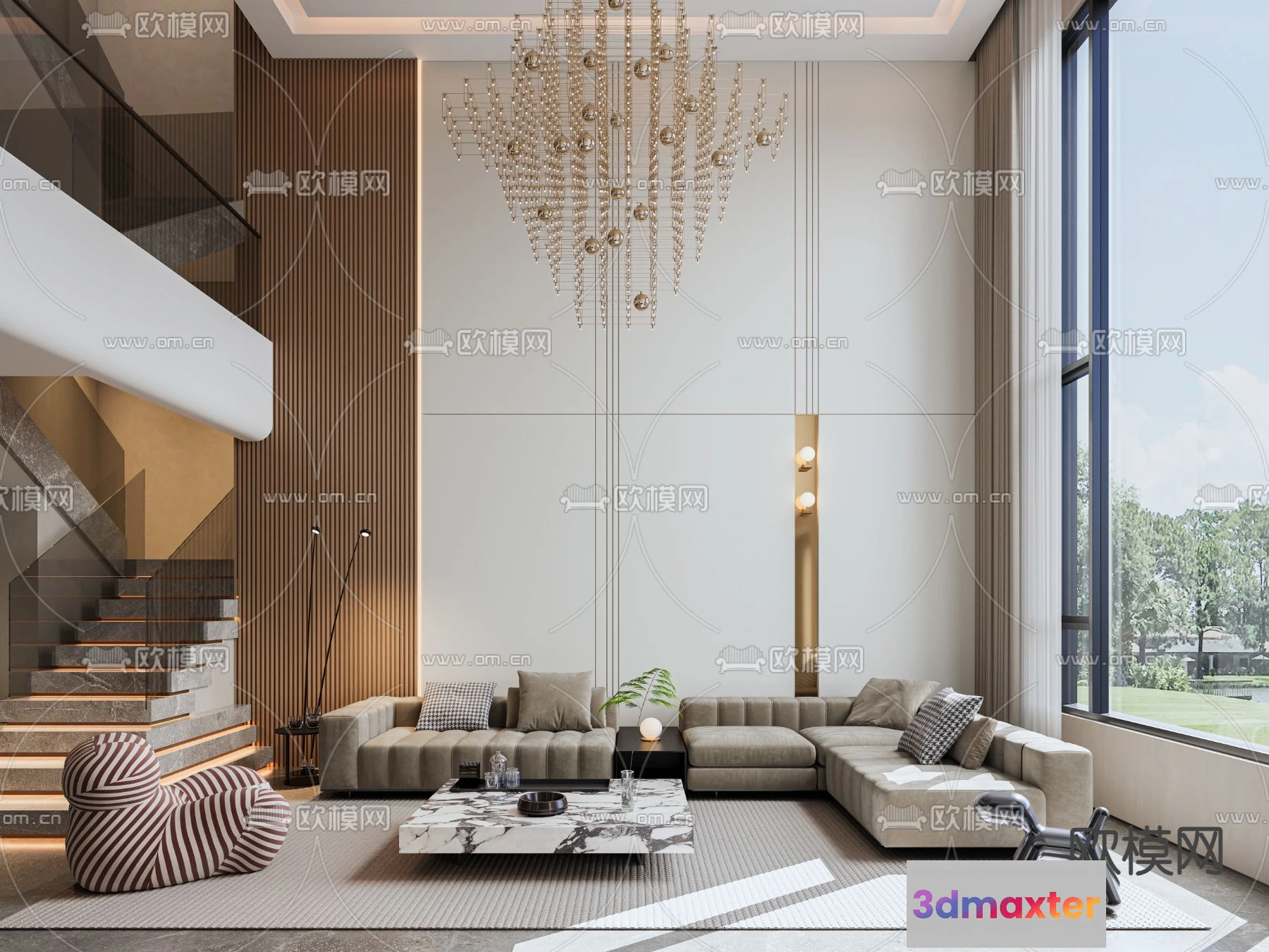 3D Models / 3D Scenes / Interior / Living Room / LIVING ROOM – MODERN STYLE – CORONA – 3D MODEL – 2035