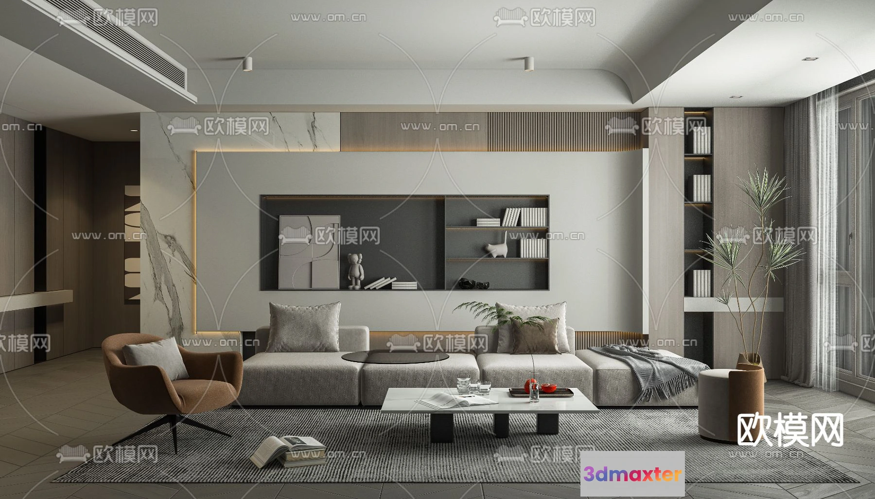 3D Models / 3D Scenes / Interior / Living Room / LIVING ROOM – MODERN STYLE – VRAY / CORONA – 3D MODEL – 1824