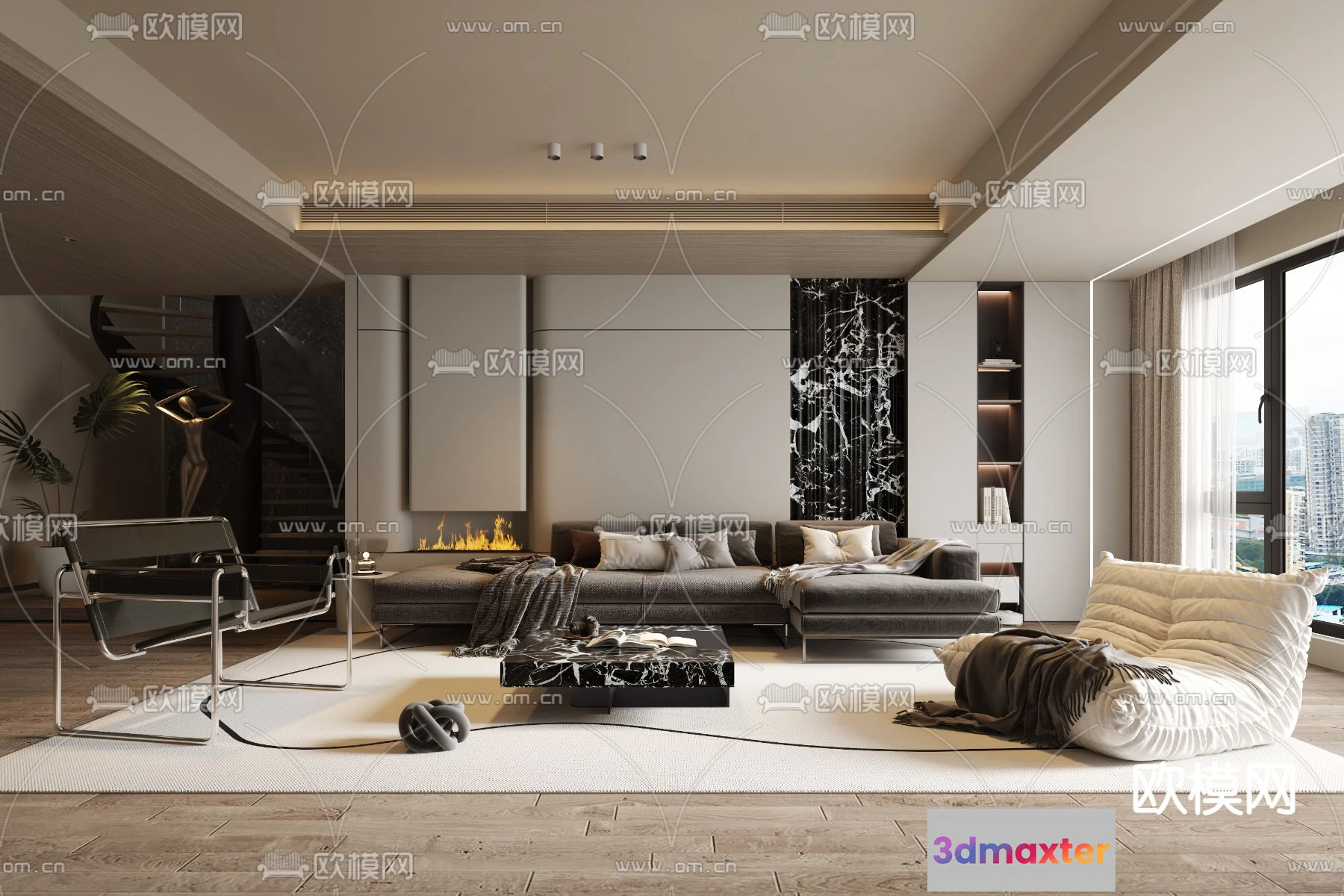 3D Models / 3D Scenes / Interior / Living Room / LIVING ROOM – MODERN STYLE – VRAY / CORONA – 3D MODEL – 1878