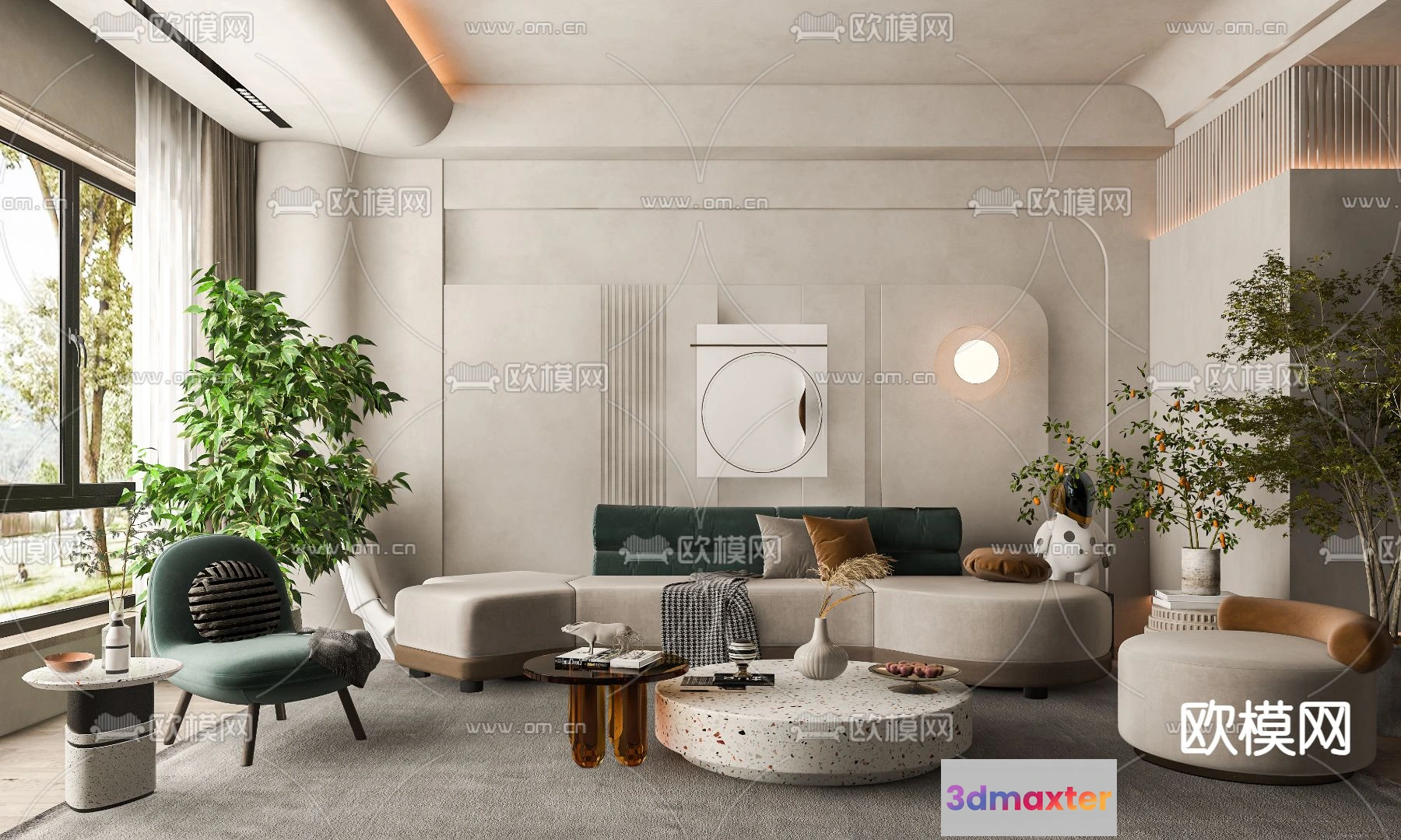 3D Models / 3D Scenes / Interior / Living Room / LIVING ROOM – MODERN STYLE – VRAY / CORONA – 3D MODEL – 1879