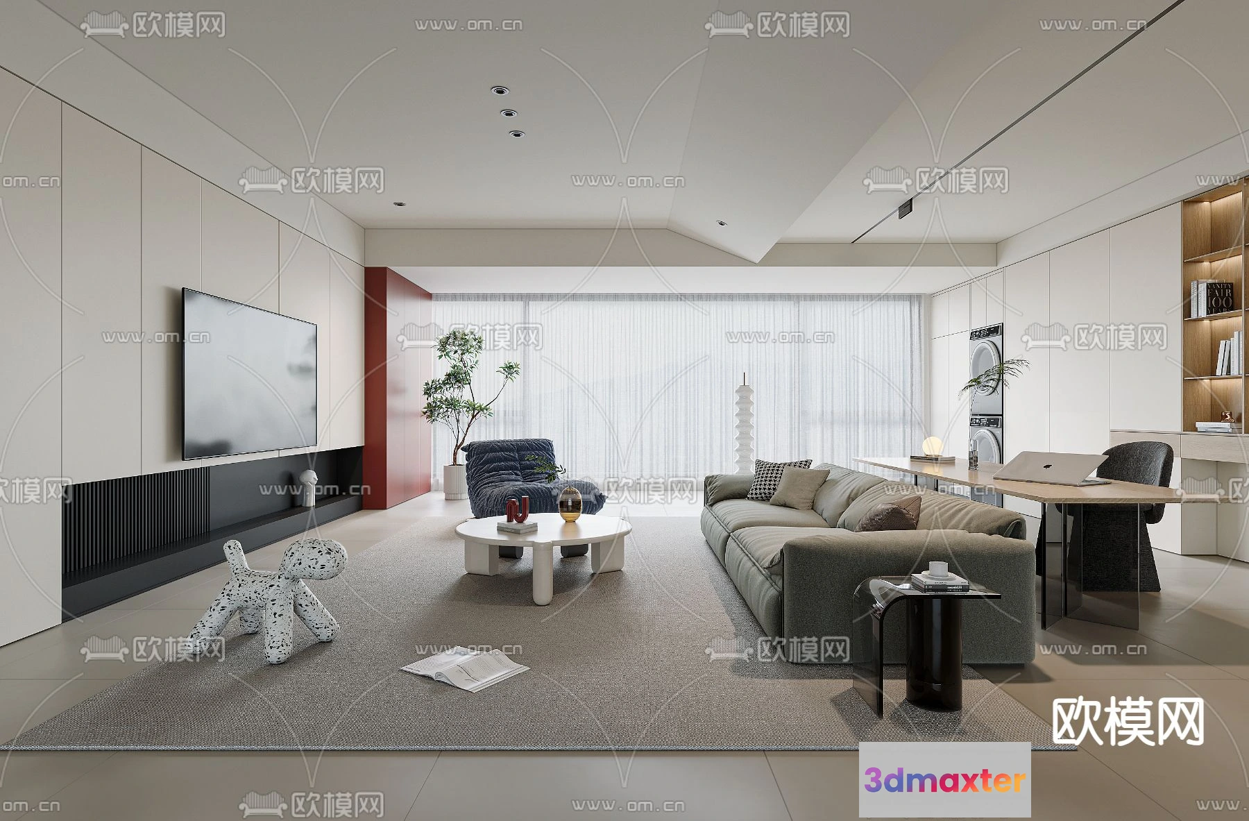 3D Models / 3D Scenes / Interior / Living Room / LIVING ROOM – MODERN STYLE – VRAY / CORONA – 3D MODEL – 1902
