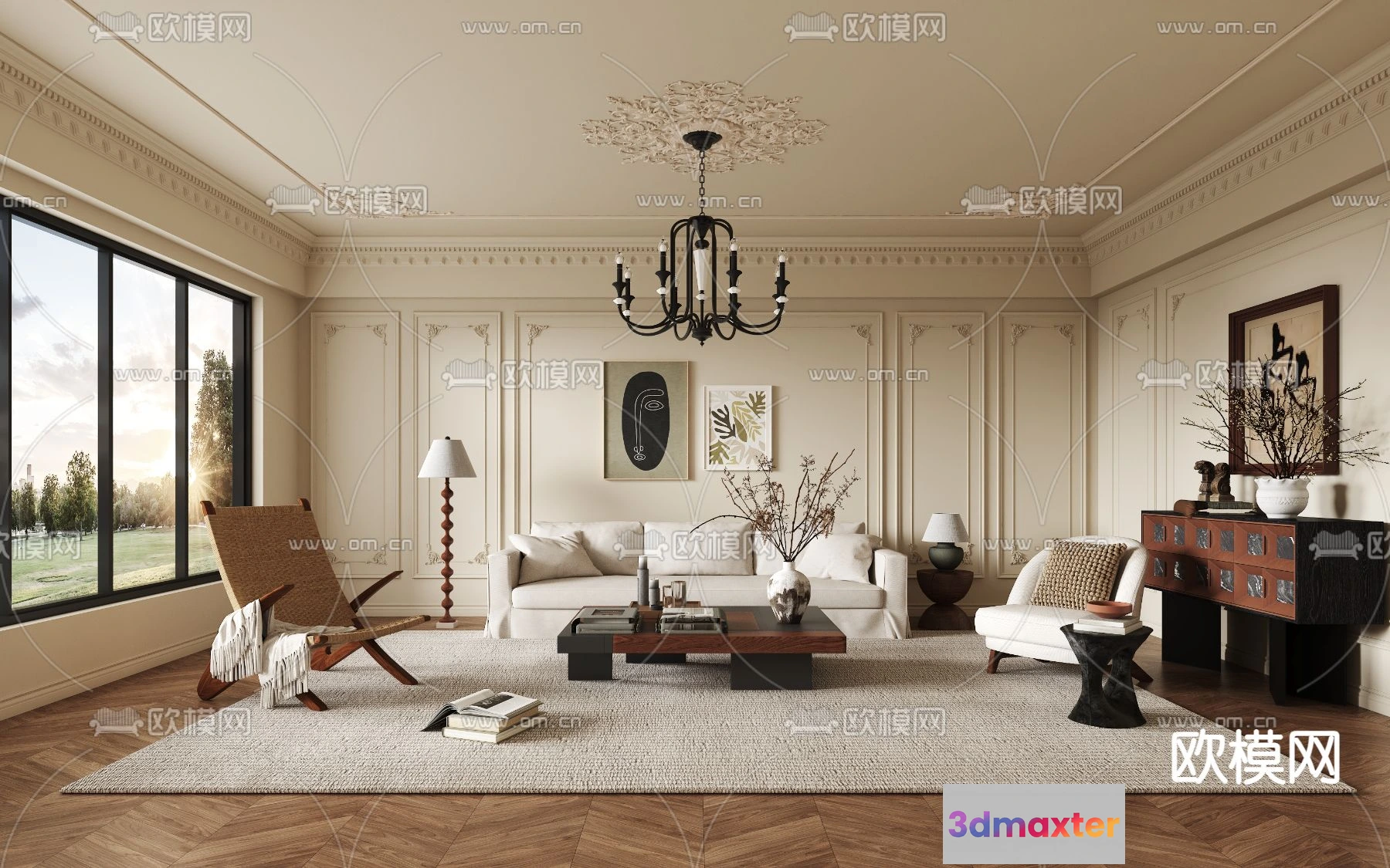 3D Models / 3D Scenes / Interior / Living Room / LIVING ROOM – MODERN STYLE – VRAY / CORONA – 3D MODEL – 1908