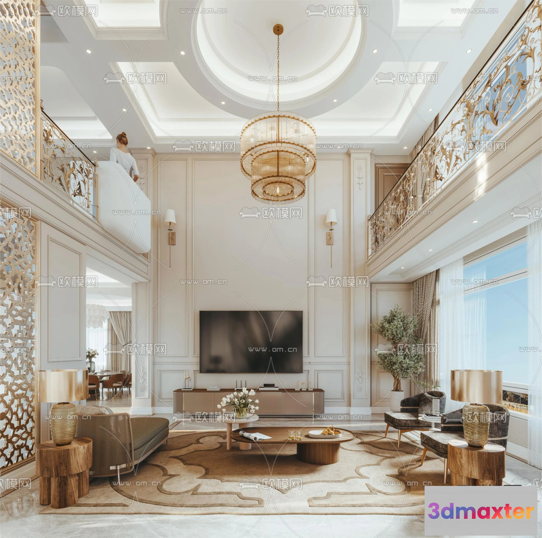 3D Models / 3D Scenes / Interior / Living Room / LIVING ROOM – MODERN STYLE – VRAY / CORONA – 3D MODEL – 1990