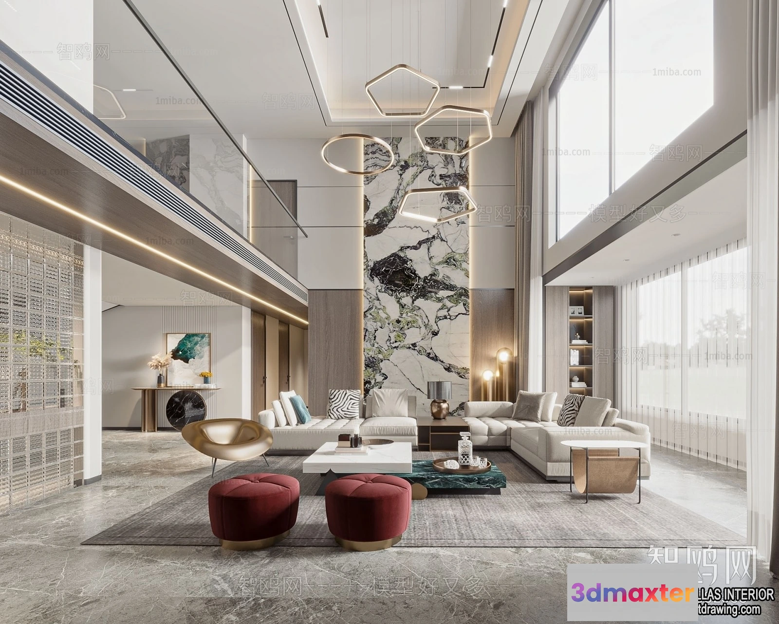 - Name: Living Room – Villas 3D Interior Scene – 3D Models – 012