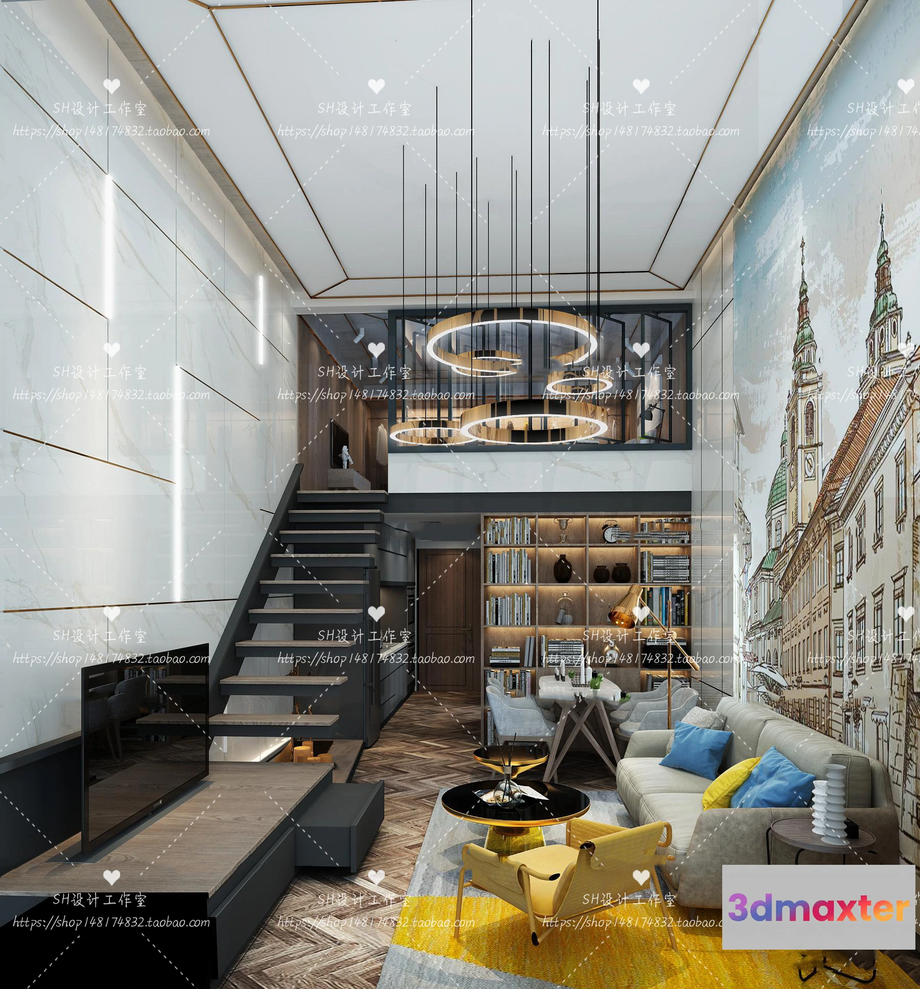 3D Models / 3D Scenes / Interior / Apartment / LOFT APARTMENT 3D SCENES – VRAY RENDER – 08