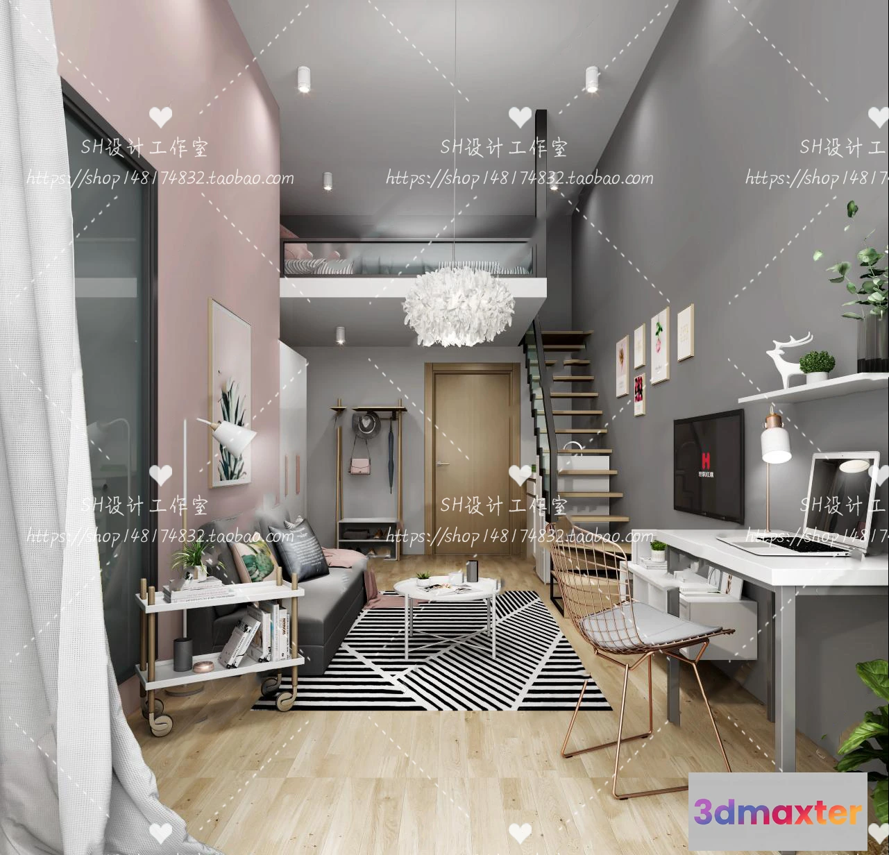 3D Models / 3D Scenes / Interior / Apartment / LOFT APARTMENT 3D SCENES – VRAY RENDER – 15