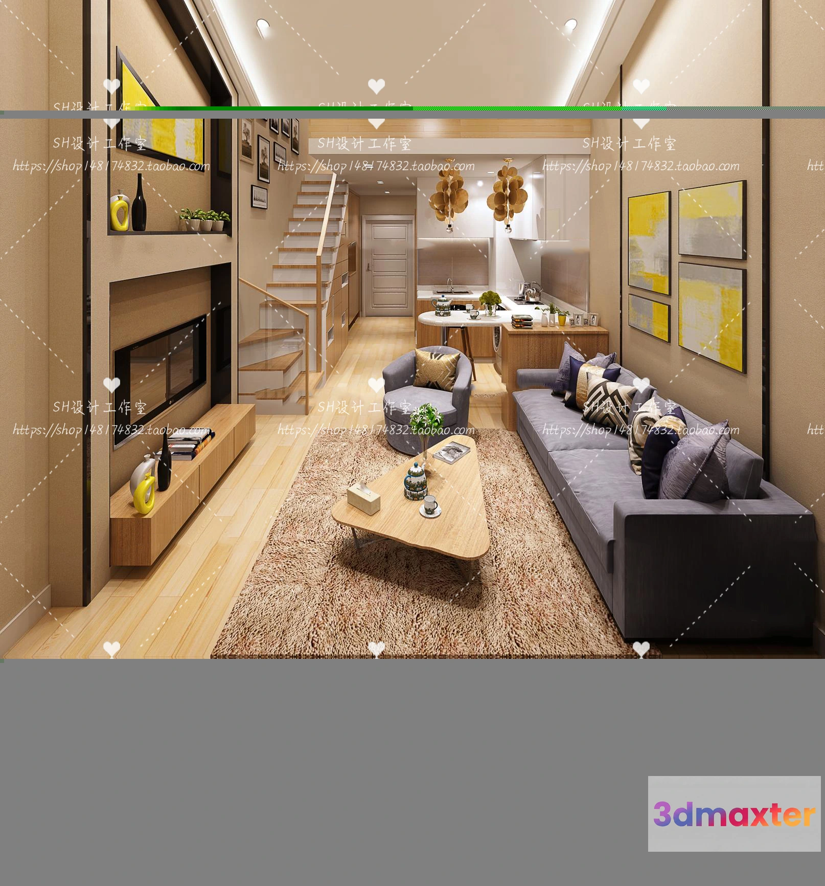 3D Models / 3D Scenes / Interior / Apartment / LOFT APARTMENT 3D SCENES – VRAY RENDER – 24