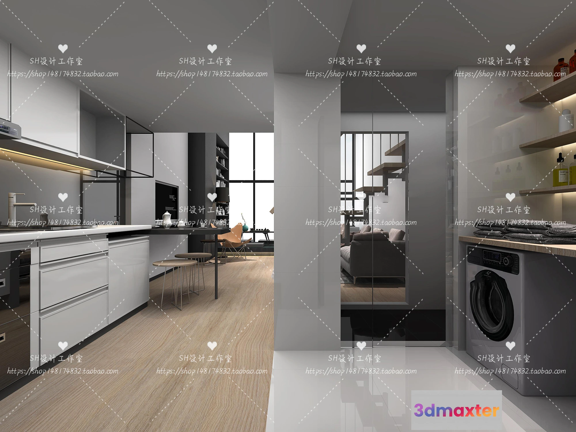 3D Models / 3D Scenes / Interior / Apartment / LOFT APARTMENT 3D SCENES – VRAY RENDER – 27