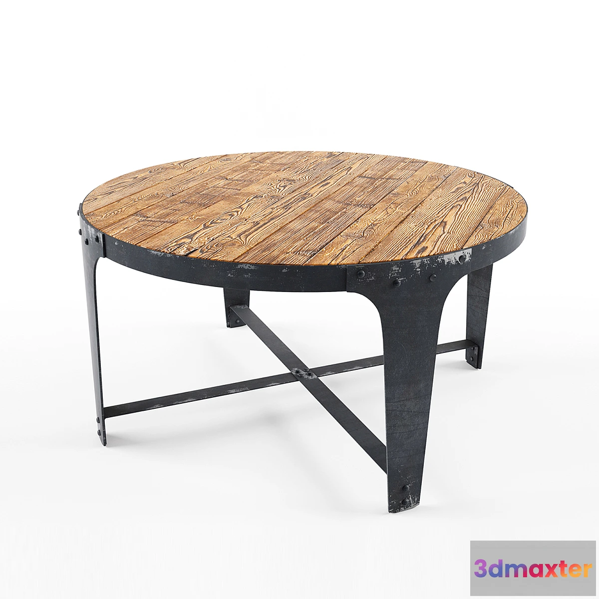 Dimensions: diameter 1000mm height 530mm Table top is made up of old-treated boards. table frame is made of sheet steel riveted joints. Modeled on the individual sketches