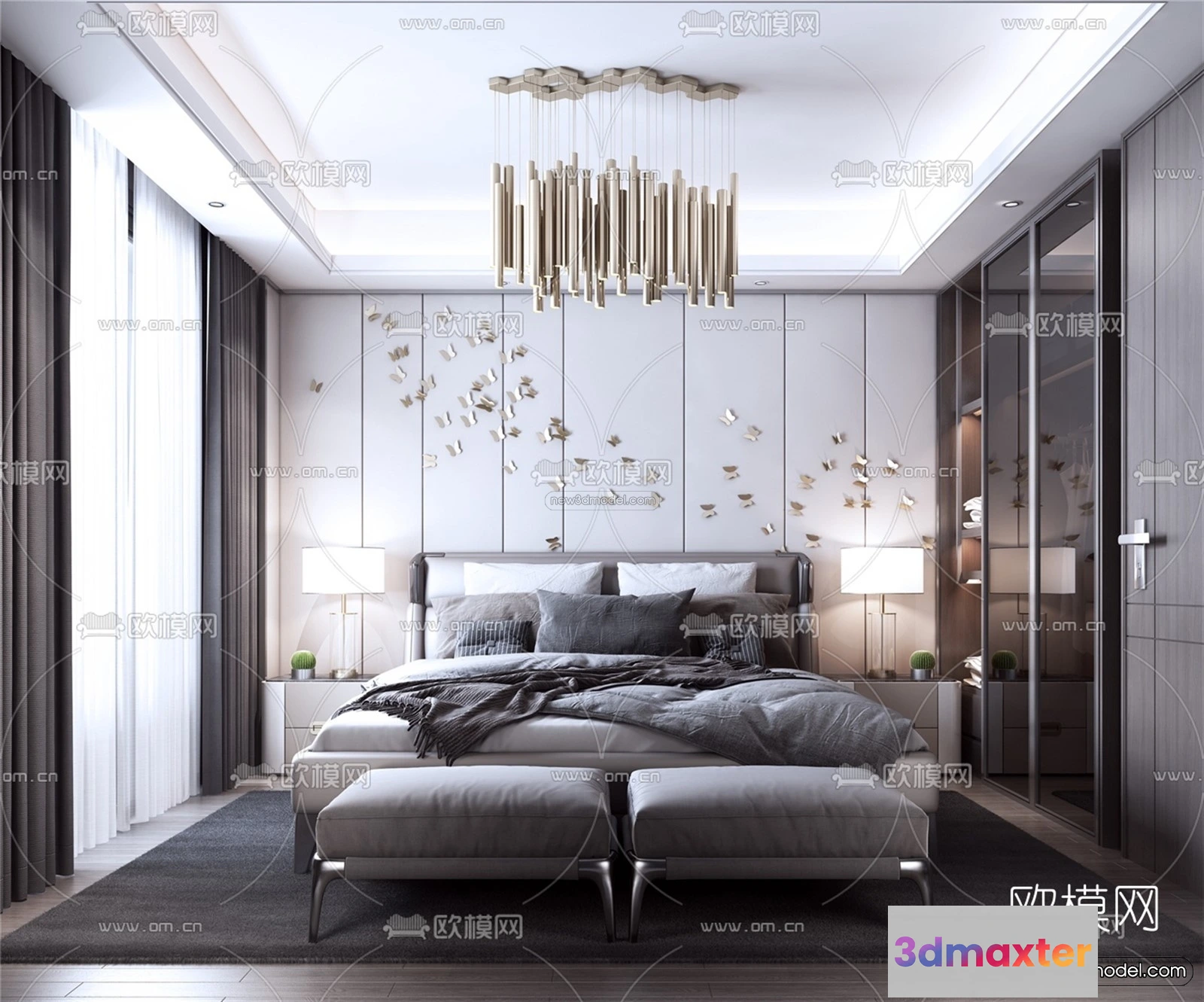 Luxury Style Interior 3D Blocks – Bedroom 3D Model – 206 – Bedroom 3D Model – VRAY