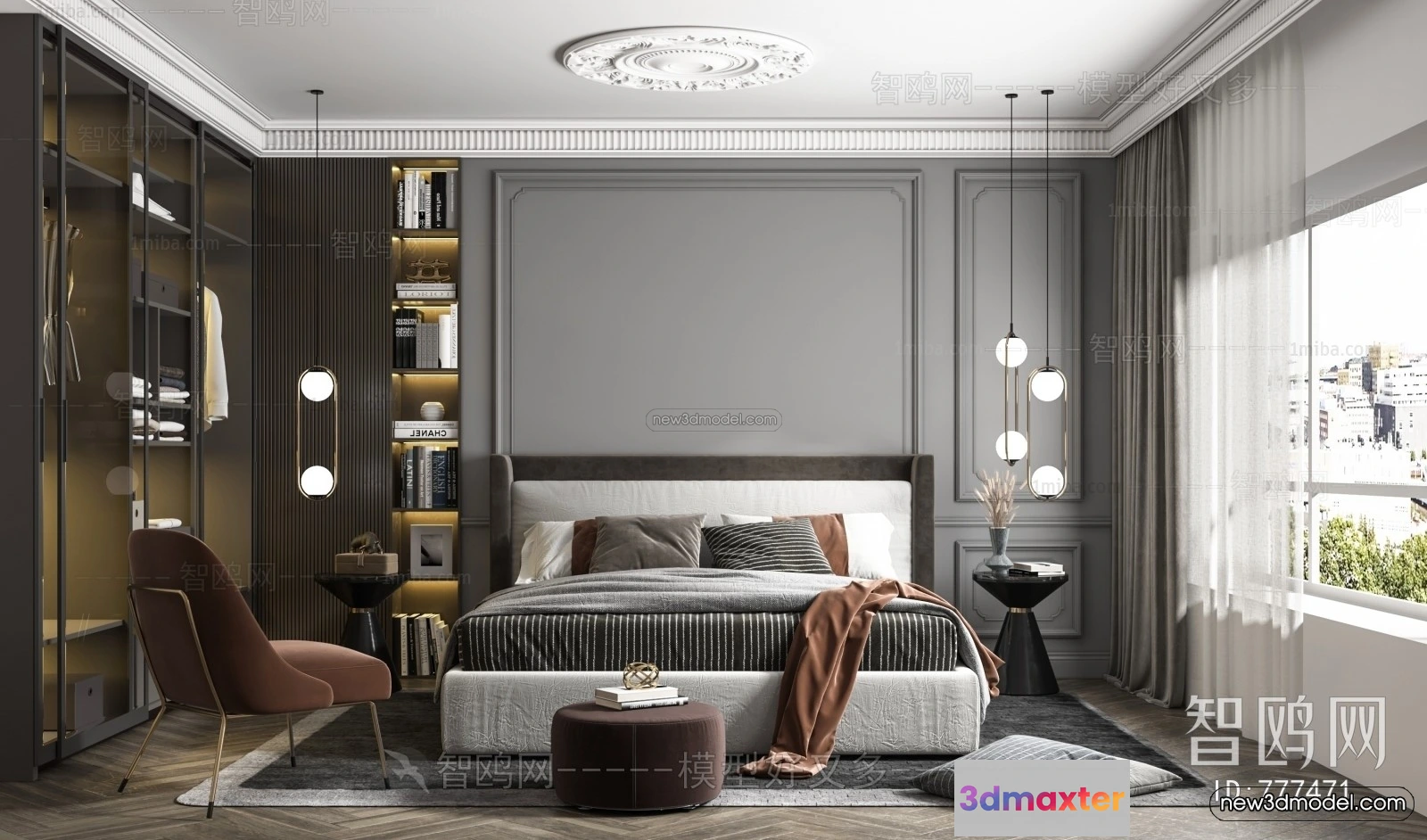 Luxury Style Interior 3D Blocks – Bedroom 3D Model – 225 – Bedroom 3D Model – VRAY