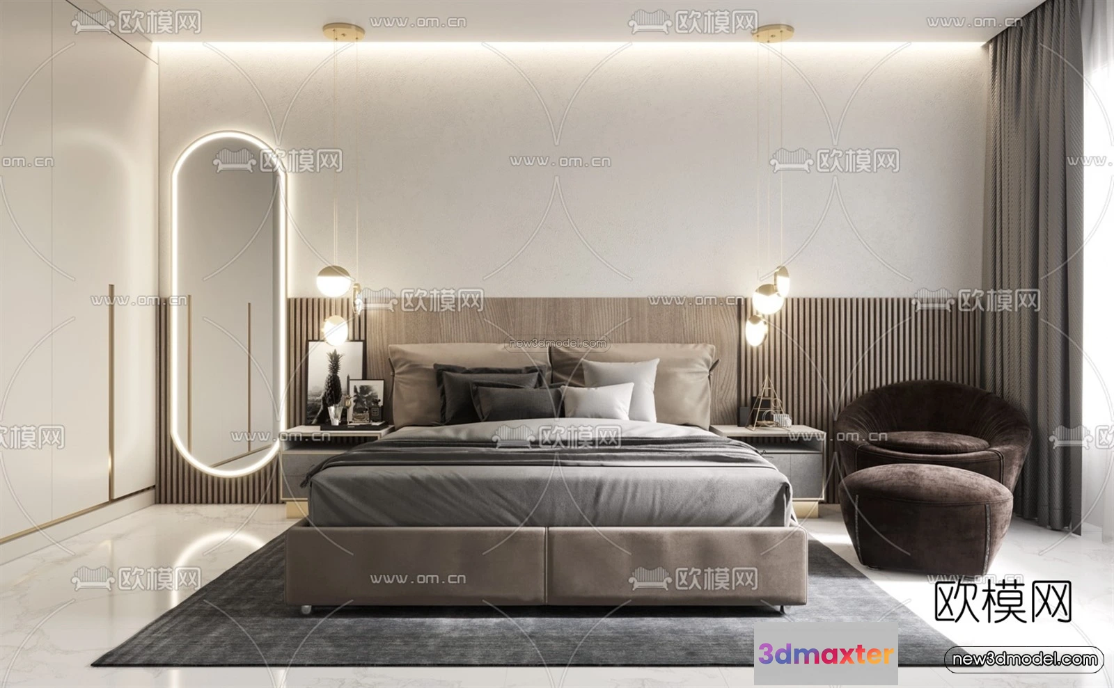 Luxury Style Interior 3D Blocks – Bedroom 3D Model – 232 – Bedroom 3D Model – VRAY