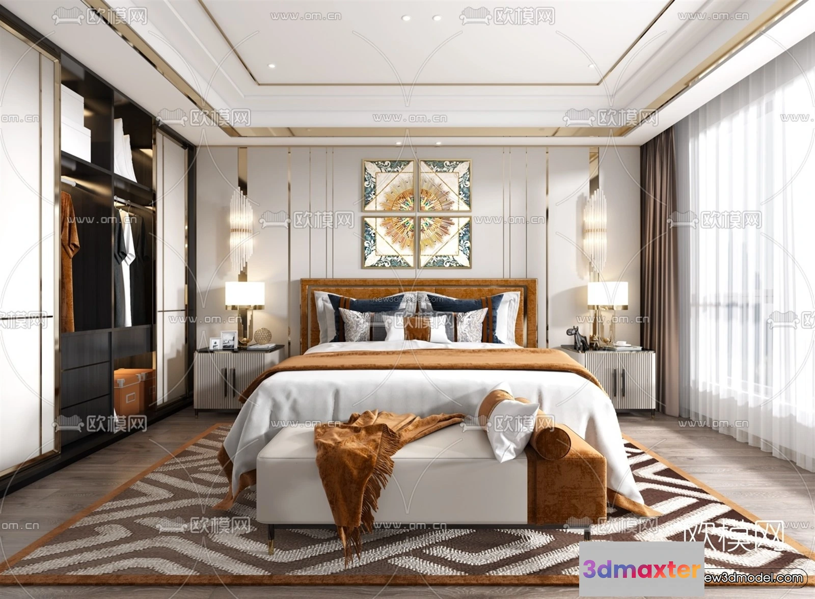 Luxury Style Interior 3D Blocks – Bedroom 3D Model – 242 – Bedroom 3D Model – VRAY