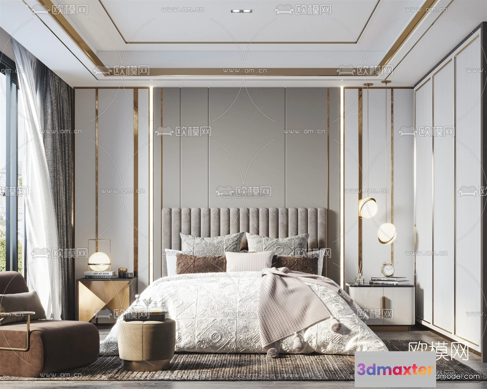 Luxury Style Interior 3D Blocks – Bedroom 3D Model – 259 – Bedroom 3D Model – VRAY