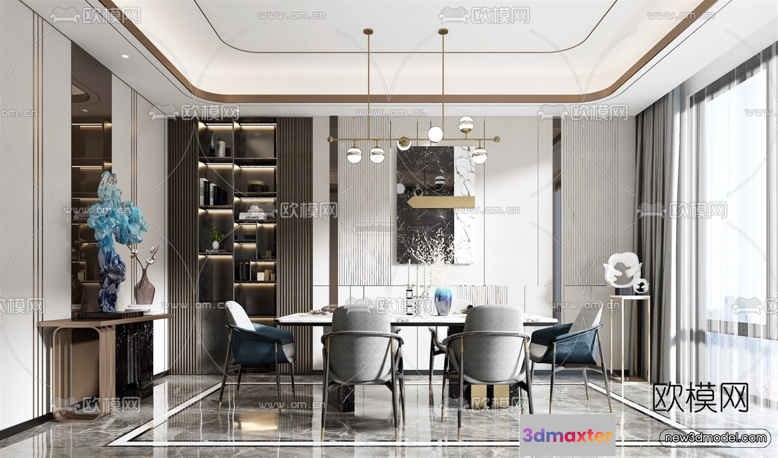 Luxury Style Interior 3D Blocks – Dining Room 3D Model – 152 – Dining Room 3D Model – VRAY