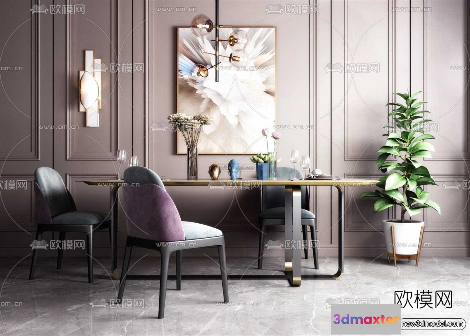 Luxury Style Interior 3D Blocks – Dining Room 3D Model – 157 – Dining Room 3D Model – VRAY