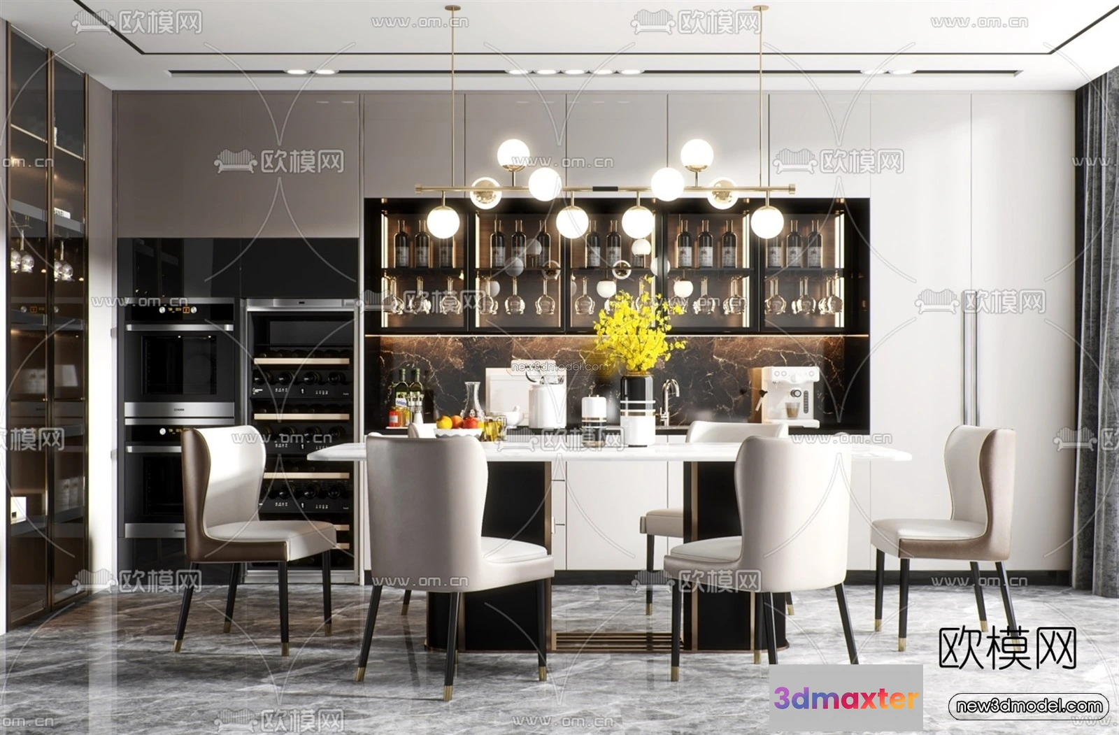 Luxury Style Interior 3D Blocks – Dining Room 3D Model – 163 – Dining Room 3D Model – VRAY