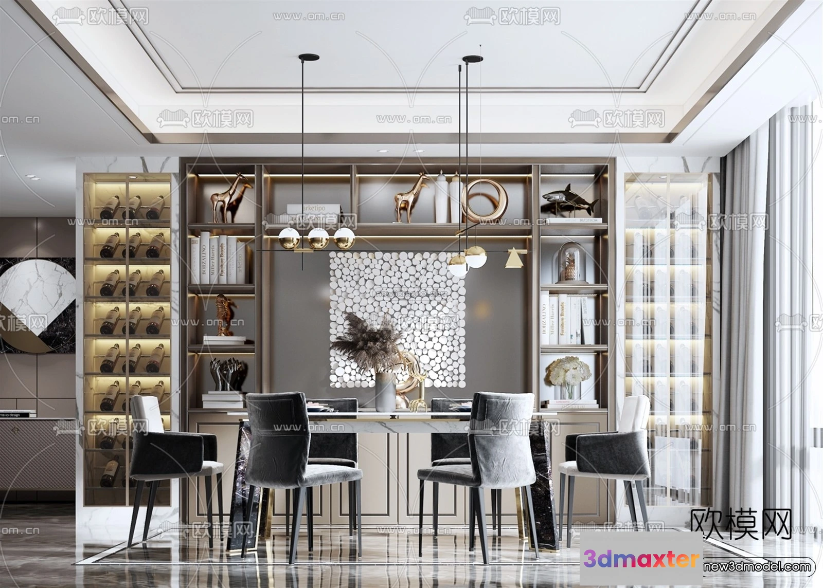 Luxury Style Interior 3D Blocks – Dining Room 3D Model – 164 – Dining Room 3D Model – VRAY